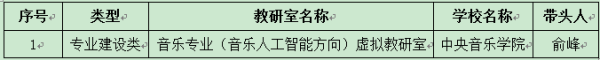 日前,教育部公布了首批虚拟教研室建设试点名单,永利俞峰校长担任带头人的“音乐专业(音乐人工智能方向)虚拟教研室”获批立项。