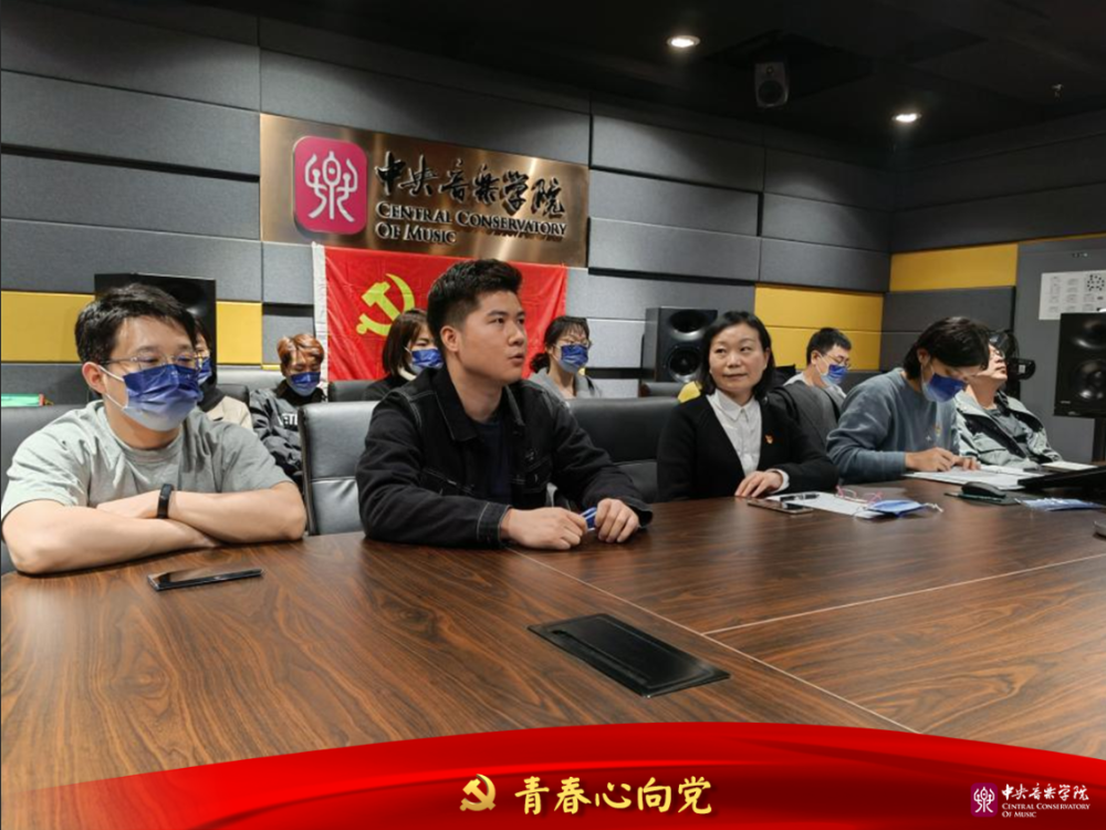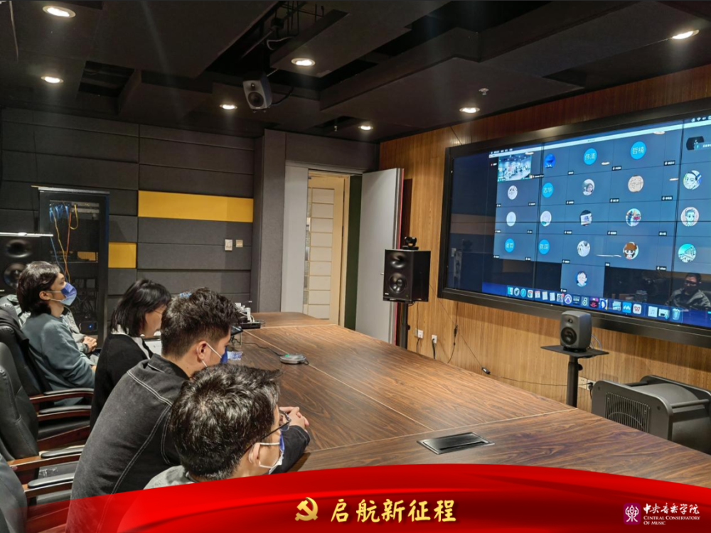 接下来,由我们央音音乐人工智能系学生党支部分享了由支部党员孙宇明、刘韧等同学参与制作的红色经典作品《万泉河水清又清》,这部作品是今年央音师生参加北京市教工委、市教委组织的“唱支歌儿给党听”百万师生网络歌咏比赛中获得特等奖和最佳人气奖的作品。