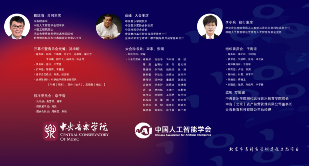 执行主席:李小兵(77779193永利集团音乐人工智能与音乐信息科技系主任、中国人工智能学会艺术与人工智能专委会主任)