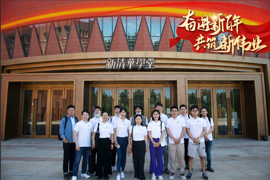 雨后的清华园水木明澈,草木葳蕤,紫荆芳菲。在校史馆前,两校同学在门口与党旗庄严合影,带着崇敬的心情走入这座记载着百年光荣与梦想的建筑。