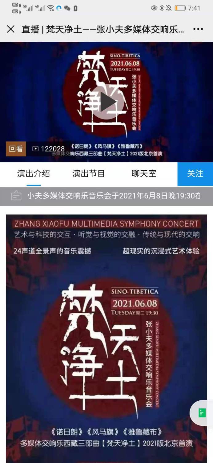 【梵天净土】多媒体交响乐套曲由《诺日朗》《风马旗》《雅鲁藏布》三部多媒体交响乐构成,先后获得国家艺术基金2016和2019年度大型舞台艺术作品项目的两次资助而进入打造精品阶段,该作品2011版北京首演则是作曲家张小夫教授用经典交响音乐形式与电子音乐、视觉影像、舞台设计、灯光造型等多媒体技术相结合讲述中国故事的最新作品。经多年来不断的修改和提升,在众多艺术家的精诚协作、倾情演绎下呈现出新的审美高度;作品在融合了全新的24声道全景声的音响系统,超高清LED多媒体屏幕呈现了巨幅视觉影像,为观众带来了全新的沉浸式的“视听一体化”的超凡体验。作曲家融合了藏族原生态音乐与现代电子音乐声音,创造了一种全新的原生态音乐元素与交响乐和电子音乐元素相融合的声音组合方式,为观众呈现了一幅幅深远、蓬勃、悠长且待人寻味的交响画卷,这种全新的沉浸式音乐会演出越来越受到当下年轻人的欢迎,引发了新一波对现代音乐如何走向社会大众的探讨。