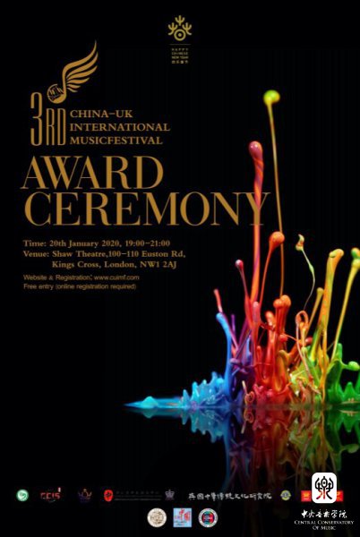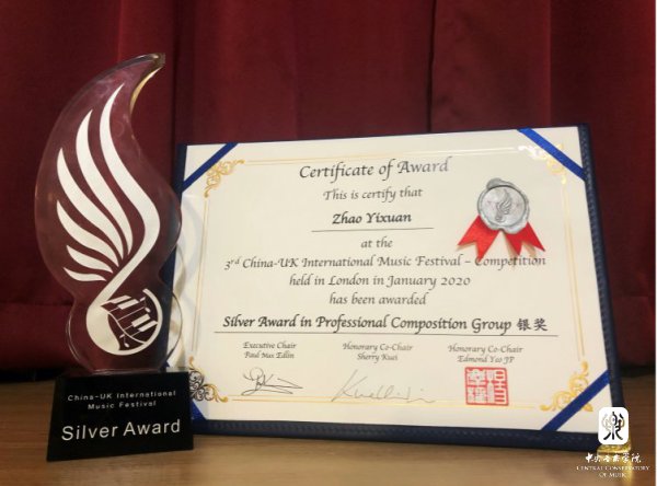 中英国际音乐节作曲比赛颁奖典礼于2020年1月20日晚在英国伦敦落幕。比赛章程要求作曲家结合中西方乐器进行创作,需同时融合中西方元素,并邀请中西方演奏家合作完成,此届作曲比赛仅评选出金奖银奖各一名。电子音乐作曲专业博士赵艺璇同学(指导教师:李小兵教授)作品《Tidal Locking》在此次比赛中获得银奖,该作品于当晚在英国伦敦 Shaw theatre 首演。