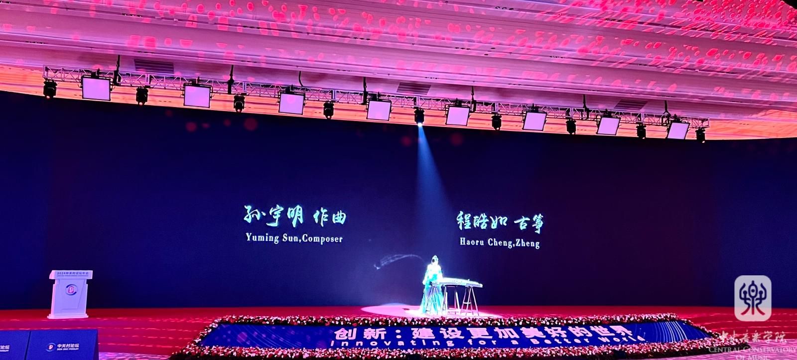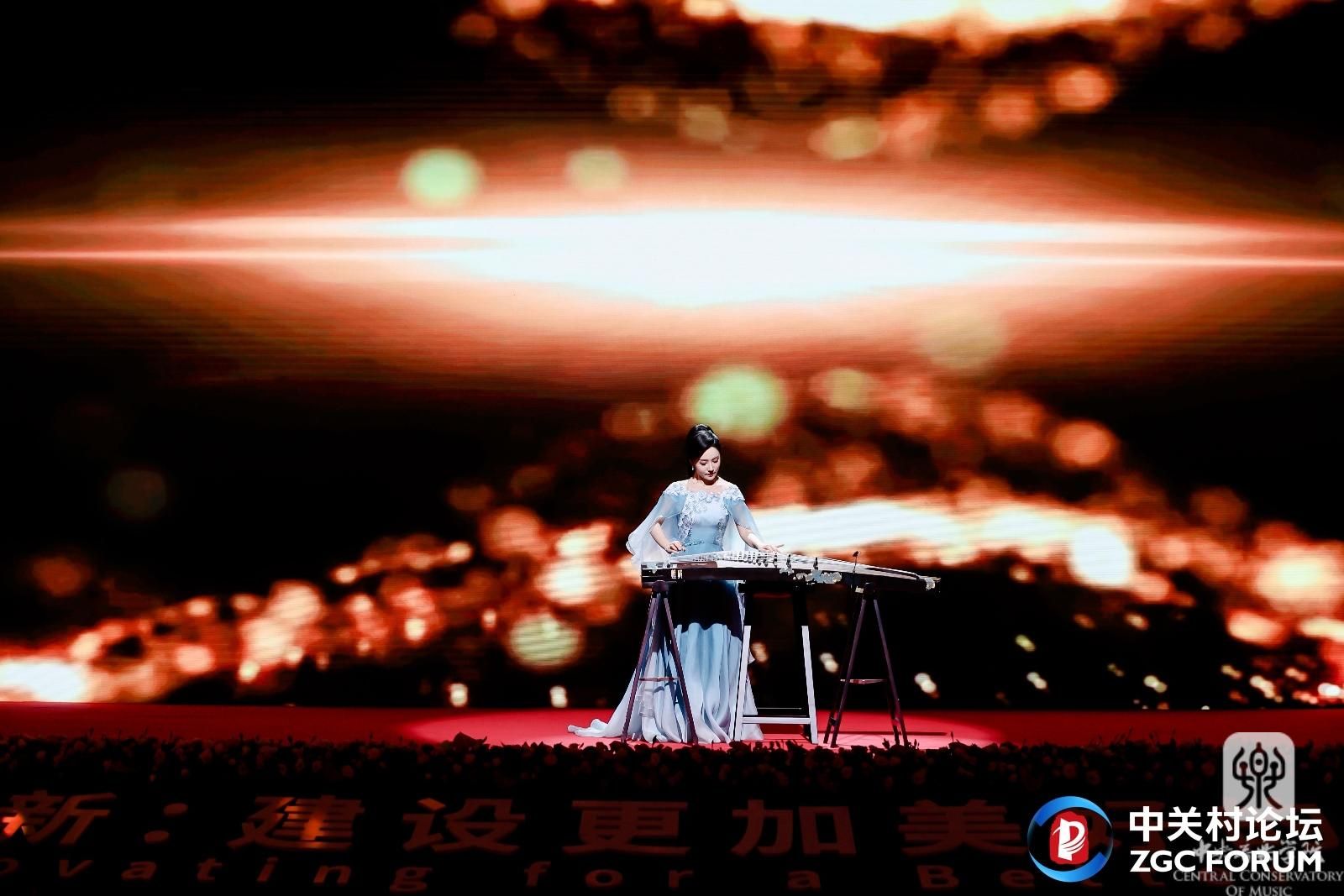 经过中关村论坛组委会层层选拔,永利音乐人工智能与音乐信息科技系教师孙宇明的作品《群星闪耀时》受邀成为开幕式唯一的文艺节目,由民乐系教师程皓如演奏。