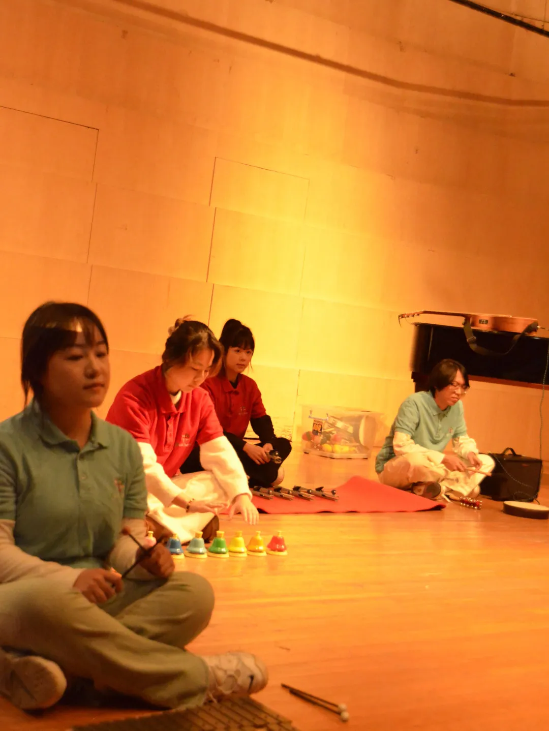 在这一活动中,由23级本科生梁咏宜、王楚旖担任音乐治疗师,带领治疗对象在音乐中进行探索。治疗对象在治疗师的引导下探索了乐器的即兴演奏,并尝试在音乐中发声。该活动的目的为在结构化的音乐活动中,促进自发性语言表达。