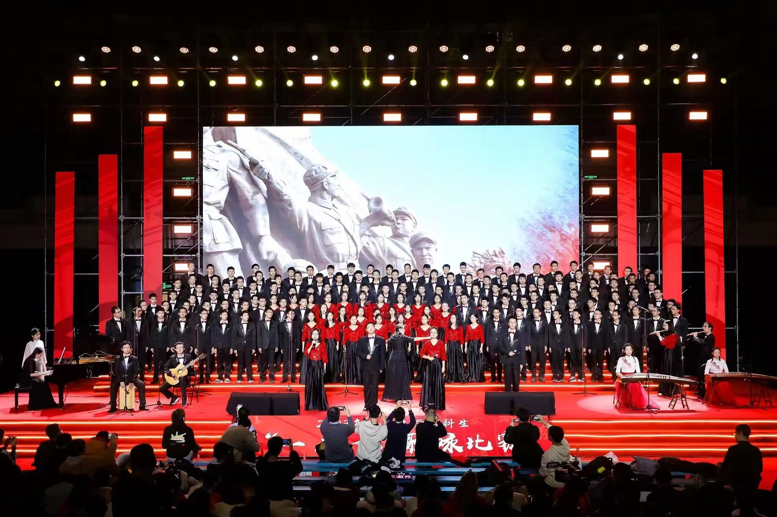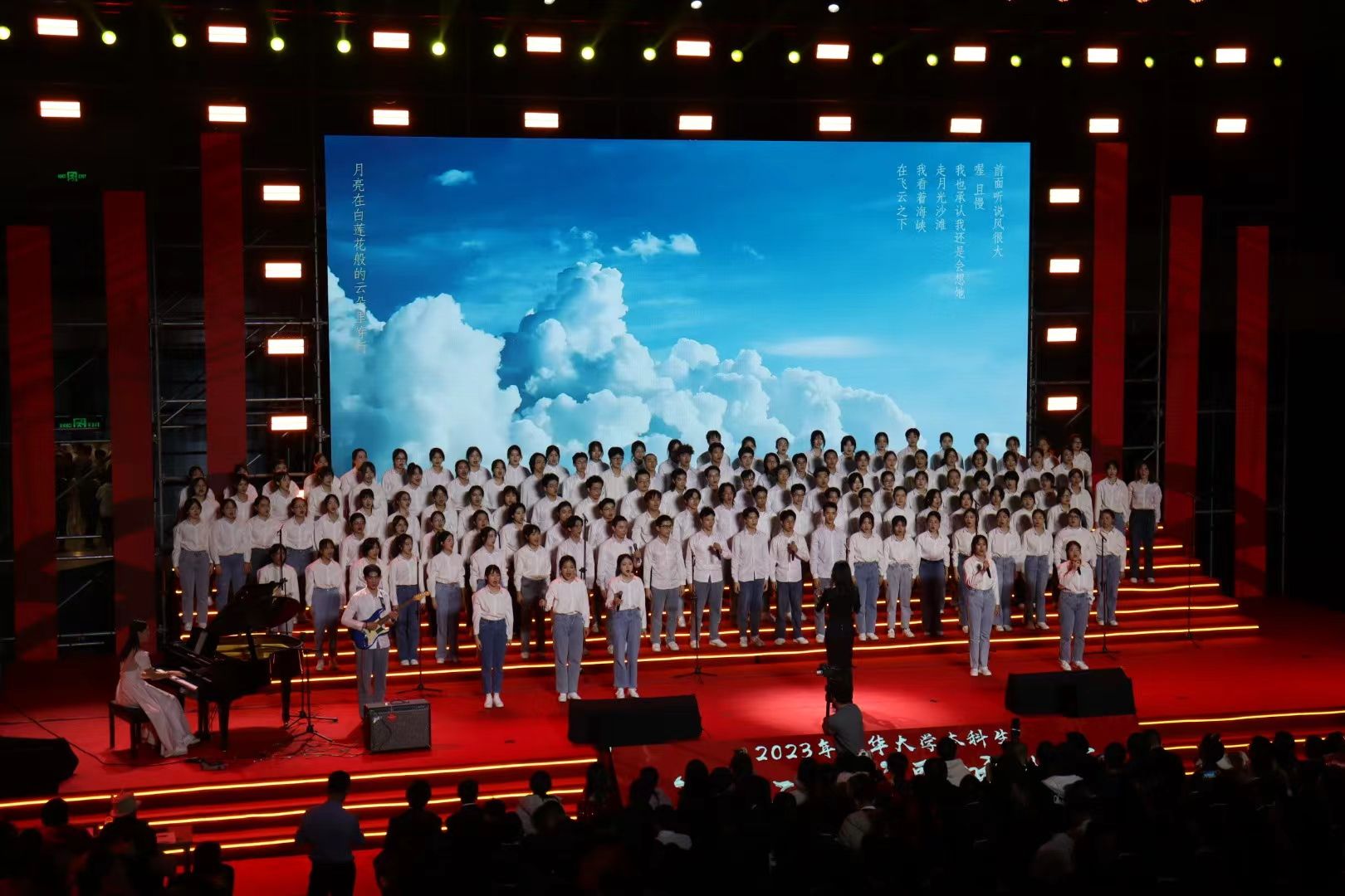 机械系、医药学院、交叉信息学院“医机药茶”合唱联队选择《天路》作为参赛作品,吕泽乔同学与单艺琳同学承担合唱改编、艺术指导及舞美编排工作并参与演出。