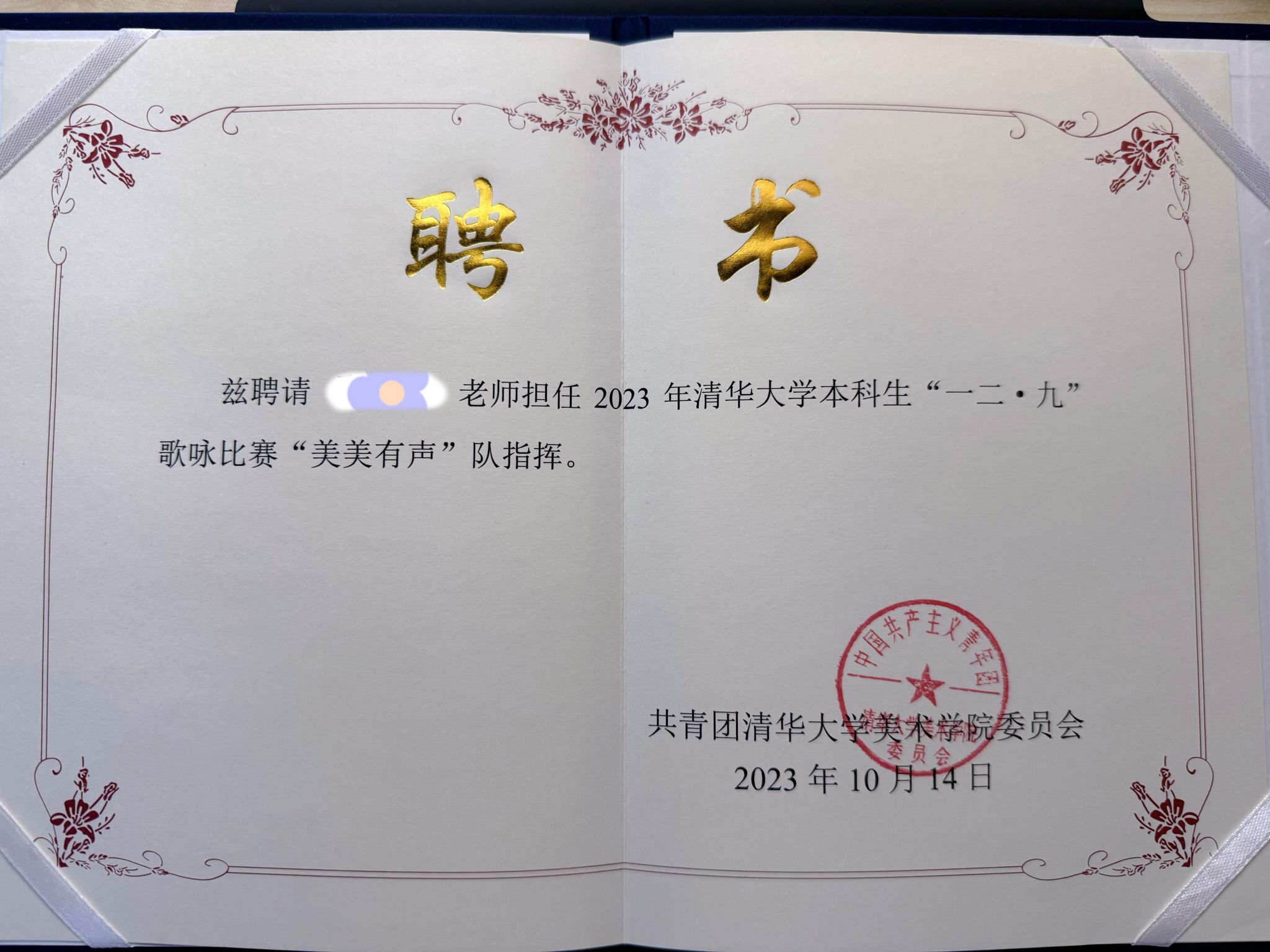 截至2023年11月末,音乐教育学院选派的陶源、韩诗童、朱哲琦、吕泽乔、单艺琳、马天一、刘垚佳等七名硕士研究生三年级学生具体联系对接了清华大学团委、美院、电子工程系、医药学院、电子系等多个部门,也多次赴清华大学举办主题讲座,通过“教唱校歌”、“乐理知识普及”、“多声部音乐之美”等活动实现美育覆盖。期间,还协助各合唱团遴选参赛选手450名,为相关合唱团提供曲目选择、节目形式编排等专业咨询和指导。