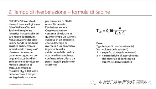 通常来说,混响时间的可变性是设计现代音乐厅时的一个重要设计指标。1895年之前的音乐厅混响时间的确定依靠的是建筑师经验;之后诞生了可以精确测算混响时间的Sabine公式使得音乐厅的造型不再仅局限在马蹄形、鞋盒形等传统形状里,建筑师可以依据公式设计出任意形状具有良好混响时间的音乐厅。
