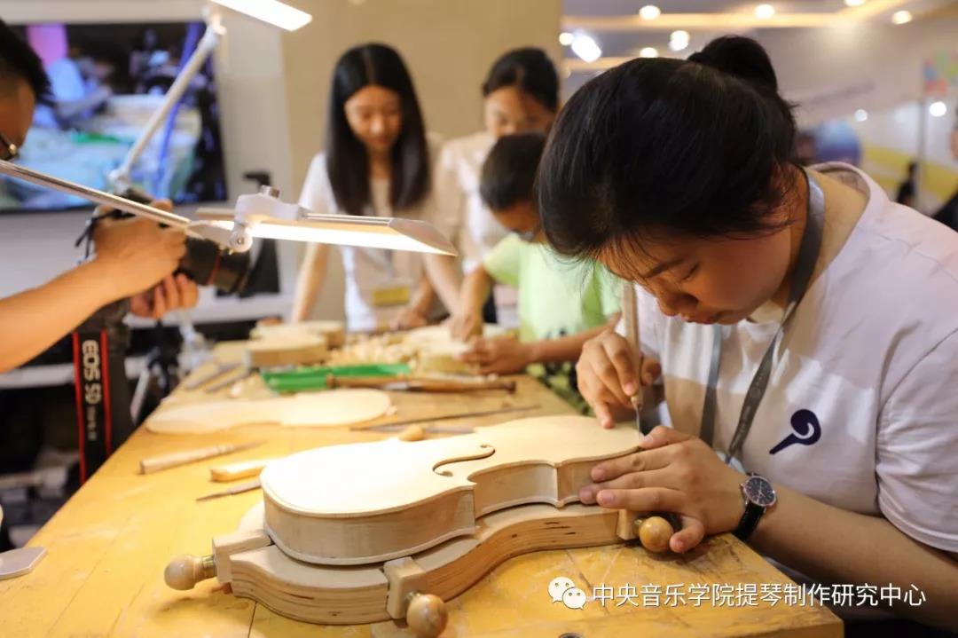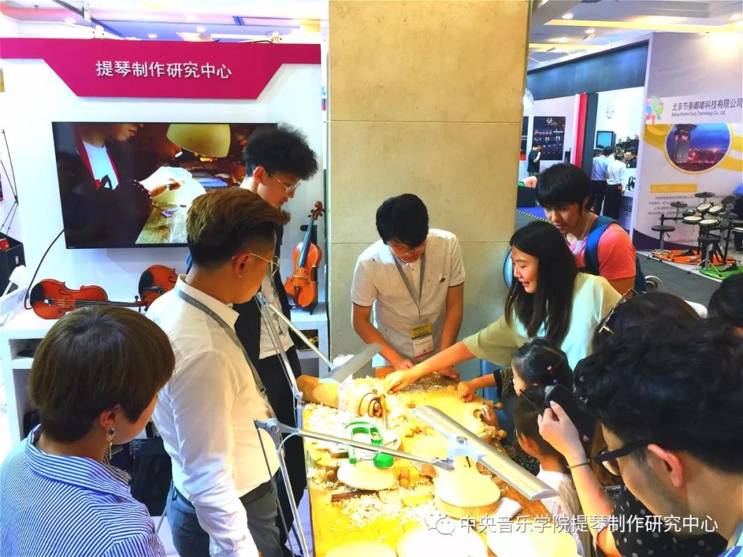 因为正逢周末,许多音乐爱好者和一些家长带着他们的孩子前来参观。活动期间,我系展位版块受到了广大观众的喜爱,各个区域都停留着观摩拍照的参观者,不论年龄大小,或是家长带着孩子,经过时都会在我系版块前驻足观看,对于提琴制作这门艺术充满了好奇心。