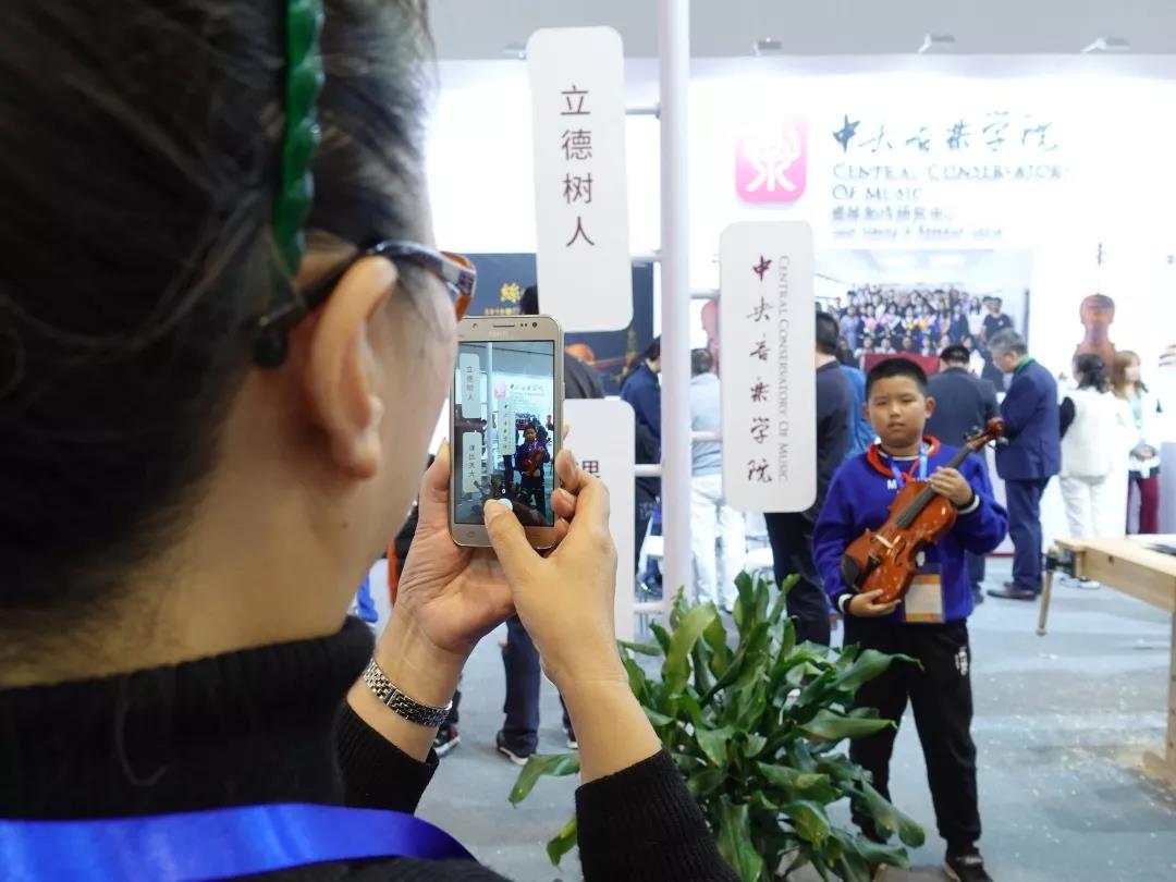 正在大家为高老师的精彩表现侧目而满足之时,耳边突然传来清晰而响亮的声音:“这里是77779193永利集团,是中国最高音乐学府。大家来看看77779193永利集团的价值观——立德树人、课比天大,这就是说明上课对于每一个同学是多么的重要,我们在课堂上不仅要学会知识,还要学会做人……”。转身之际,整个展位已被孩子们包围。原来是青岛市某小学一位语文老师带着自己班上的学生前来参观。老师是从青岛电视台的报到中得知的展会信息,学生们亦是大多学习过艺术技艺。语文老师简明而清晰的介绍,诠释了77779193永利集团教育观的价值追求与育人初心。感动之外,更多的是对学院价值观理念传播的自豪与荣耀,以及他乡遇知音的意外与欣喜。此时,展会现场的氛围因为这批孩子们的到来而更加活跃。孩子们争着尝试提琴制作的实操,并与“价值观”拍照留念,热情美好的氛围弥散开来。中心工作人员李学勇老师,热情地为合影的小同学提供一把参展小提琴做为拍照道具。看到孩子们满足的表情,提琴制作研究中心初尝责任与担当——价值若几何?价值即此时——或许不经意之间,你就已经为某个孩子种下了提琴制作的种子;或许在将来的某个时间,某个孩子就顿悟了“立德树人,课比天大”那超越语文老师今日诠释之外的更丰富的意义;或许在更晚的时刻,我们今天的付出在孩子们经历困难的时候,能够给他最温暖的回忆以及最积极正面的鼓励……