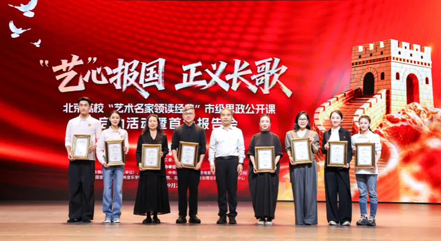 本次课程以“‘艺’心报国 正义长歌”为主题,旨在进一步深入学习习近平总书记在纪念中国人民抗日战争暨世界反法西斯战争胜利80周年大会上的重要讲话精神,“用好纪念活动这本生动的爱国主义教材”,弘扬伟大抗战精神,凝聚奋进力量。在抗战胜利80周年系列活动中,首都艺术院校师生以高度责任感完成演出等各项任务,展现新时代艺术工作者“艺心报国”的价值追求。本次报告会创新采用“宣讲+表演”形式,邀请纪念活动的核心主创、编导团队及一线师生代表,分享创作历程与感人故事,将抗战主题文艺创作与排演实践,转化为弘扬伟大抗战精神的“大思政课”。