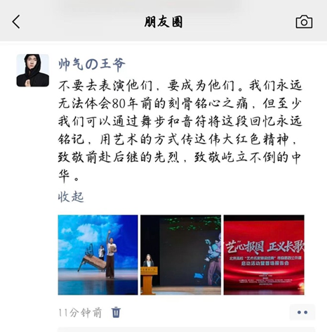 活动现场,纪念活动策划设计部副部长、广场活动部副部长肖向荣,《正义必胜》总导演周莉亚、韩真等20余名师生代表被聘为宣讲团成员,结合参与纪念抗日战争胜利80周年系列活动的亲身经历,分享台前幕后故事,进一步推动抗战胜利80周年纪念活动中激发的深刻体悟与创作热情,转化为潜心艺术创作的扎实行动。公开课中穿插文艺晚会《正义必胜》选段《血染的白桦林》《乘风》《怒吼吧,黄河》的表演,师生重温了激情澎湃的活动场景,在共情共鸣中汲取伟大抗战精神的激励力量,让艺术因使命而璀璨,梦想因担当而辉煌。