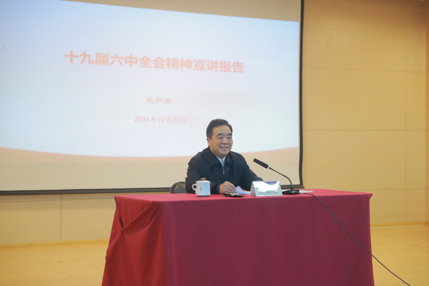 报告会上,欧阳淞同志紧紧围绕学习贯彻党的十九届六中全会精神和全会通过的《中共中央关于党的百年奋斗重大成就和历史经验的决议》,从深刻把握召开党的十九届六中全会、作出新的历史《决议》的重大意义,深刻把握党百年奋斗的初心使命和重大成就,深刻把握中国特色社会主义新时代的历史性成就和历史性变革,深刻把握党百年奋斗的历史意义和历史经验、走好新的赶考之路四个方面,运用丰富史料与详实数据,对全会精神进行全面阐释和深入解读。