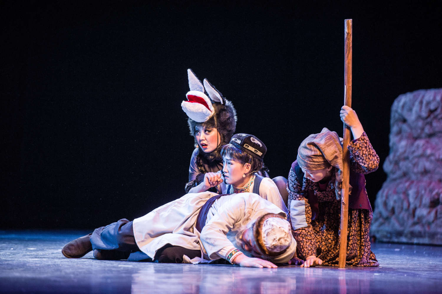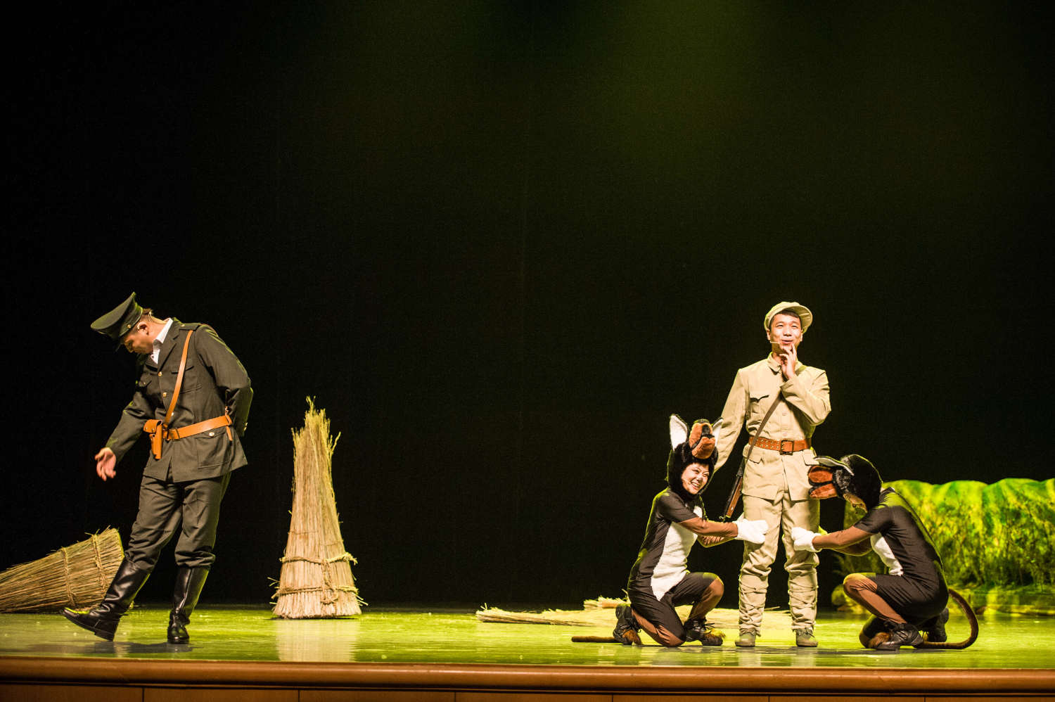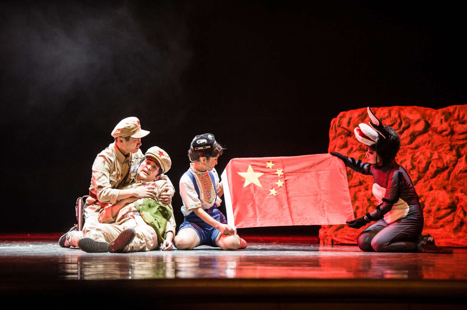 乌鲁木齐市艺术剧院儿童剧《五星红旗》讲述的是维吾尔族小男孩阿曼和他的小伙伴小毛驴长耳朵历险的故事。