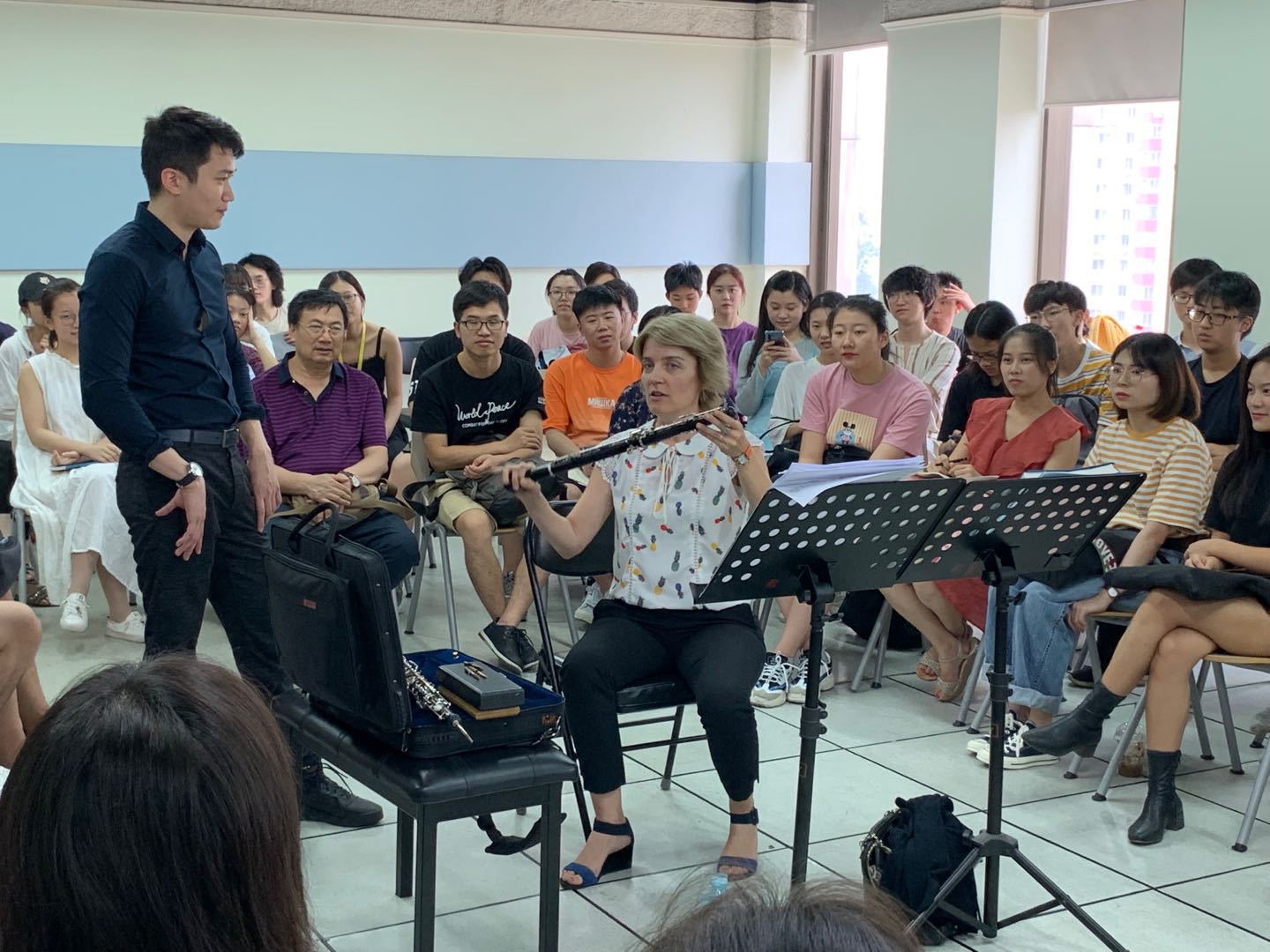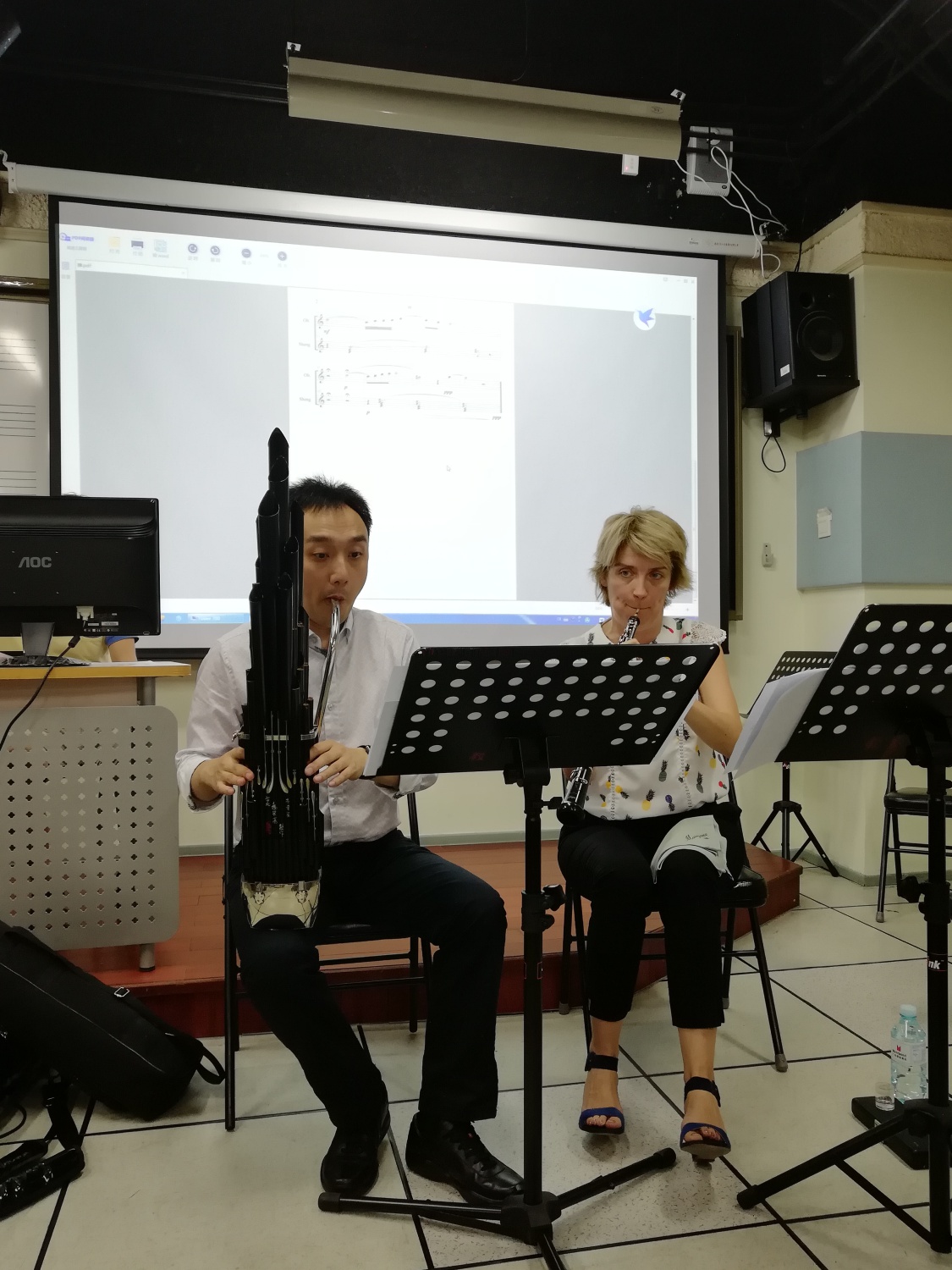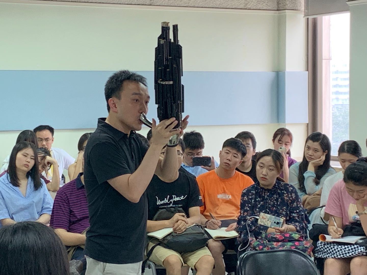 7月19日与20日下午,2019北京国际作曲大师班(BICW)继专家讲座、音乐会、个别课与小组课等系列活动后,又推出了另一重要活动内容——“双簧管与笙乐器工作坊”。此次乐器工作坊邀请到了来自法国的双簧管演奏家瓦莱赫·列日邦都特(Valerie Liebenguth)和中国的笙演奏家王磊,分别为学员们进行乐器的讲解示范并进行现场互动交流。