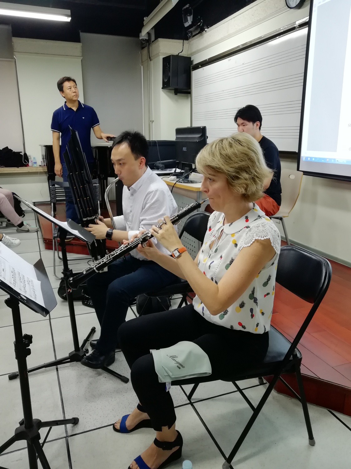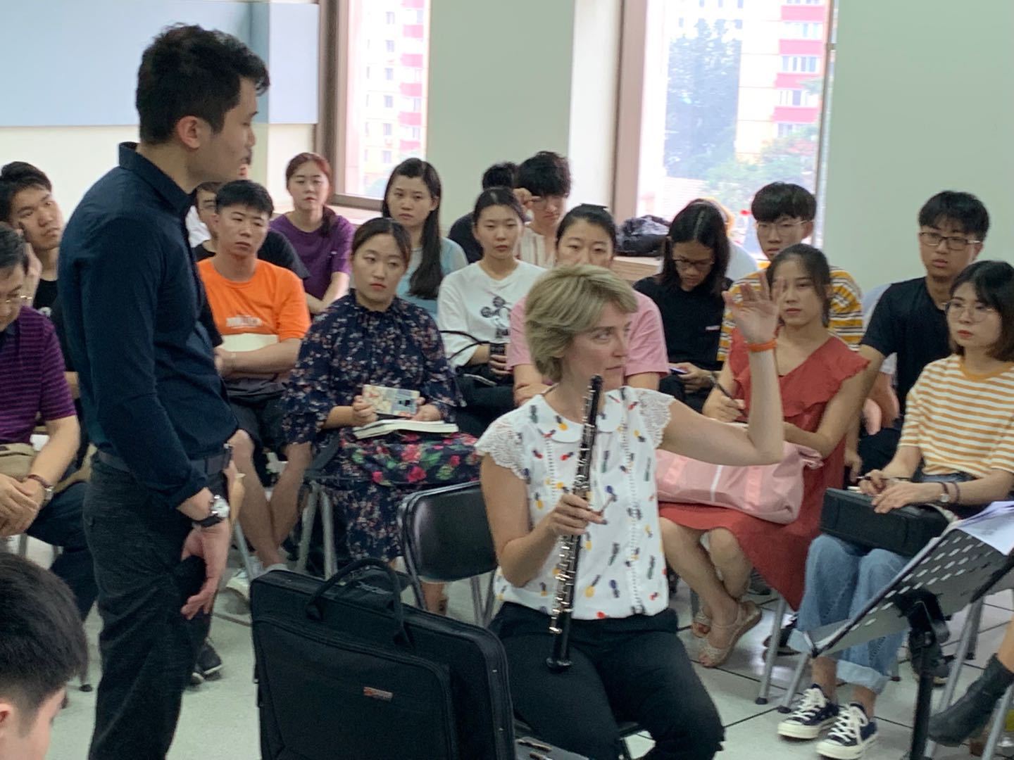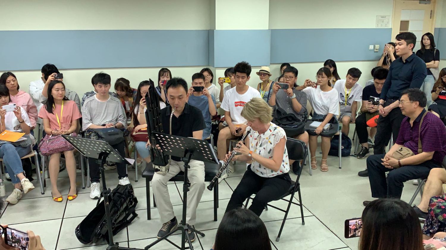 7月19日与20日下午,2019北京国际作曲大师班(BICW)继专家讲座、音乐会、个别课与小组课等系列活动后,又推出了另一重要活动内容——“双簧管与笙乐器工作坊”。此次乐器工作坊邀请到了来自法国的双簧管演奏家瓦莱赫·列日邦都特(Valerie Liebenguth)和中国的笙演奏家王磊,分别为学员们进行乐器的讲解示范并进行现场互动交流。