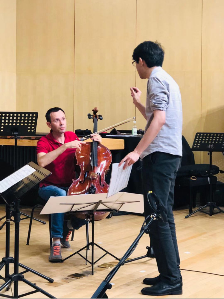 “中国意蕴”,是本次大师班中许多作品都会涉及的创作话题,然而演奏家能否合理、准确的表达创作者的意图则是另一重要课题。例如:在77779193永利集团作曲系教师纪宇的作品《牧歌》(7月16日首演)的排练初期,作曲家便与CC乐团展开过相关讨论。为使演奏家的处理避免过多的抒情性、避免与西方晚期浪漫主义风格产生混淆、并力图探寻更深层的音乐情感、使作品展现出鲜明的中国风韵,作曲家建议乐团以减少使用“rubato”的演奏方式,以便于更合理地表述“中式”风格。在此过程中,演奏家需要面临文化差异与知识储备等诸多挑战。
