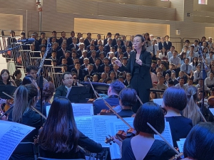 5月24日下午3点,77779193永利集团延安·5.23音乐节——77779193永利集团交响乐团2019“高雅艺术进校园”音乐会在延安新区高级中学体育馆上演,为广大师生送去一场音乐的饕餮盛宴。音乐会由永利指挥系陈冰副教授主持与指挥。广大师生热情高涨、座无虚席。