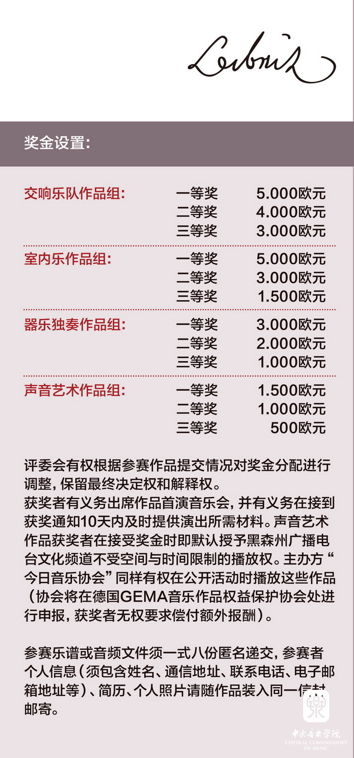 莱布尼茨国际作曲比赛暨第八届中国ConTempo作曲比赛简章