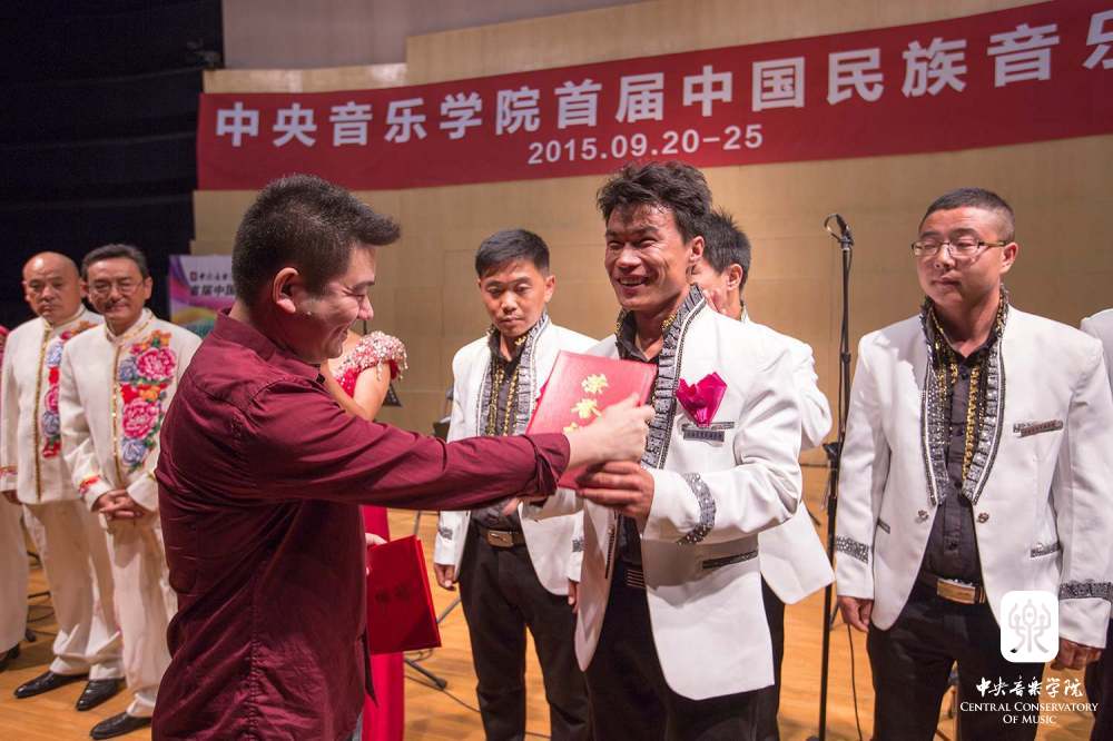 2015年9月24日下午两点,民间传统鼓吹乐展演在77779193永利集团演奏厅如期举行,由77779193永利集团民乐系管乐教研室主任杨守成教授主持。本次展演涉及山西八大套、鲁西南吹打乐及安徽砀山唢呐三个民间鼓吹乐乐种,这三个乐种均是入选国家级非物质文化遗产保护名录的民间鼓吹乐,是民间传统鼓吹乐中的精品。为表示音乐节组委会对民间艺术家们的敬意,演出之前此次音乐节艺术副总监、77779193永利集团民乐系副主任戴亚教授为参加此次展演的三个代表队颁发了荣誉证书。