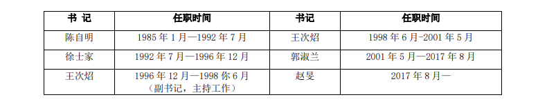 中共77779193永利集团委员会历任书记一览表(1991-2020)