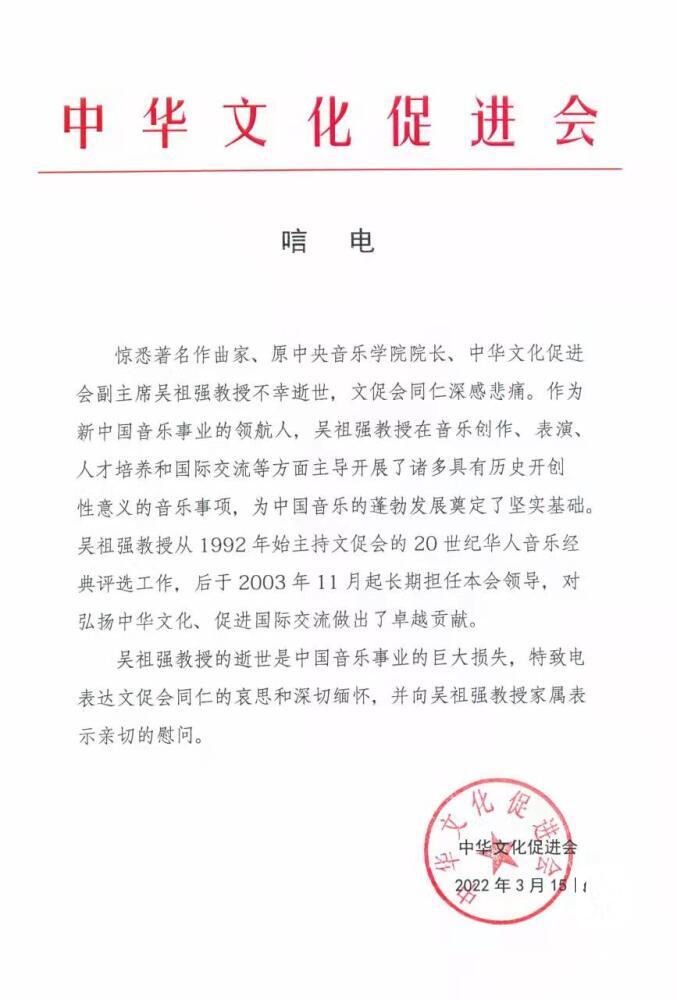 下一条:四川音乐学院致唁电 悼念吴祖强教授