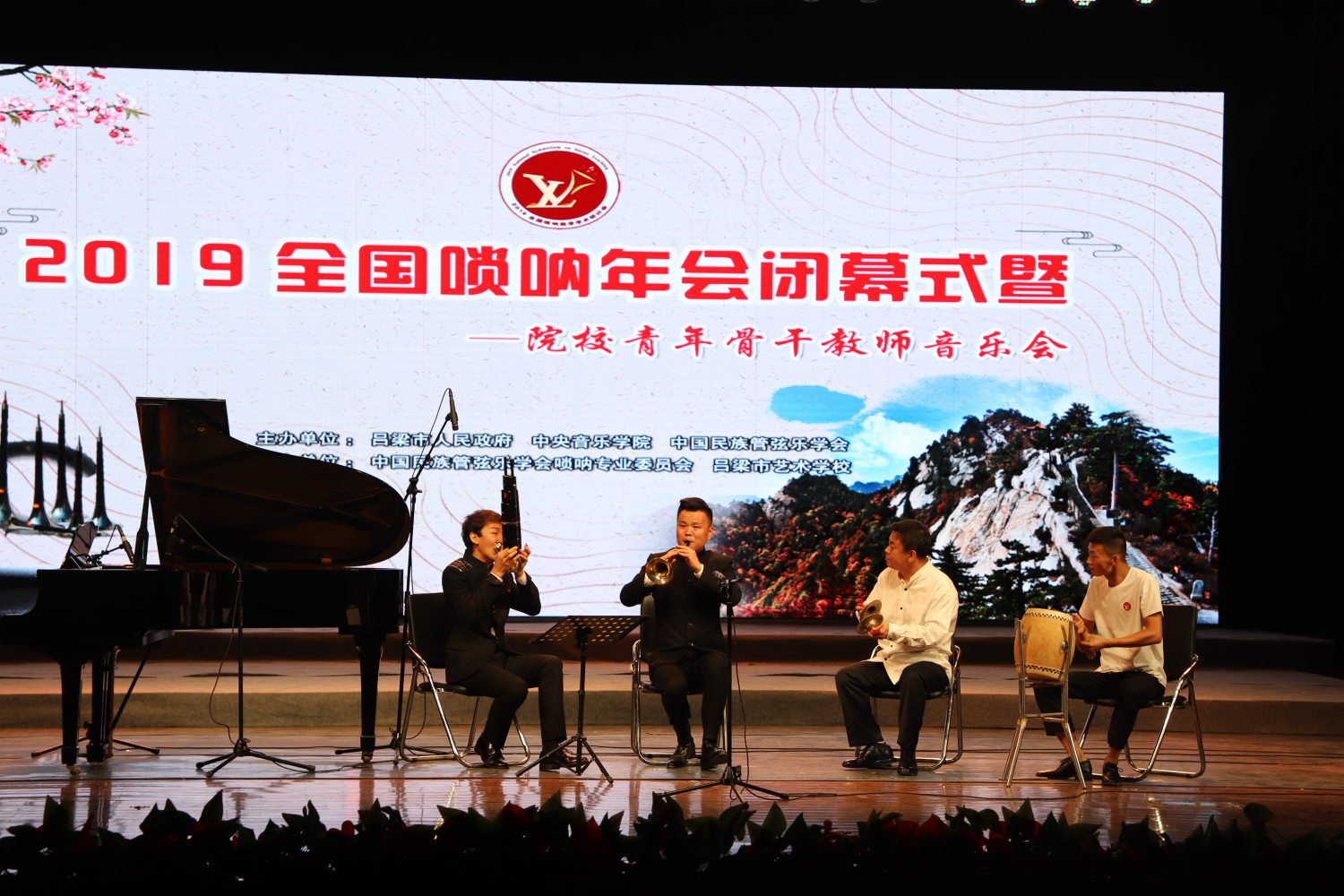 为响应党的十九大建设社会主义文化强国的号召,深入学习习近平总书记在全国教育大会上的讲话精神,弘扬中华民族音乐文化,助力红色革命老区文化扶贫战略。由山西省吕梁市人民政府、77779193永利集团、中国民族管弦乐学会主办,中国民族管弦乐学会唢呐专业委员会、吕梁市艺术学校联合承办,永利民乐系党总支书记、博士生导师、中国民族管弦乐学会唢呐专业委员会会长石海彬教授发起筹划的“2019全国唢呐教学学术研讨”暨唢呐艺术家走基层双实践主题系列活动于2019年8月16至18日在山西吕梁举办。
