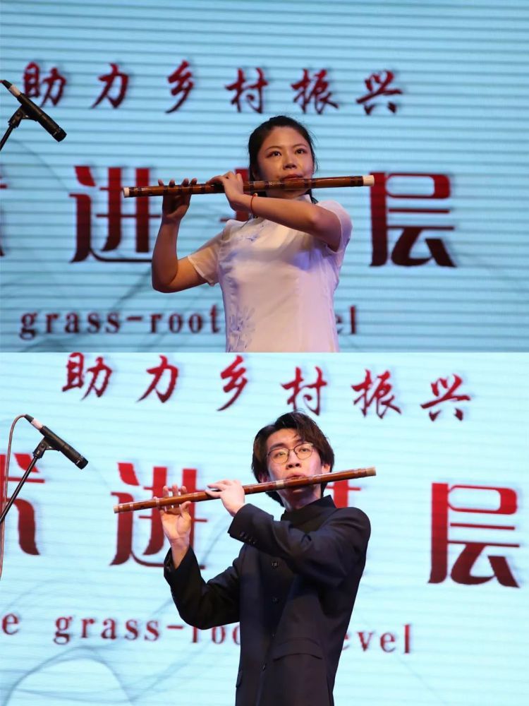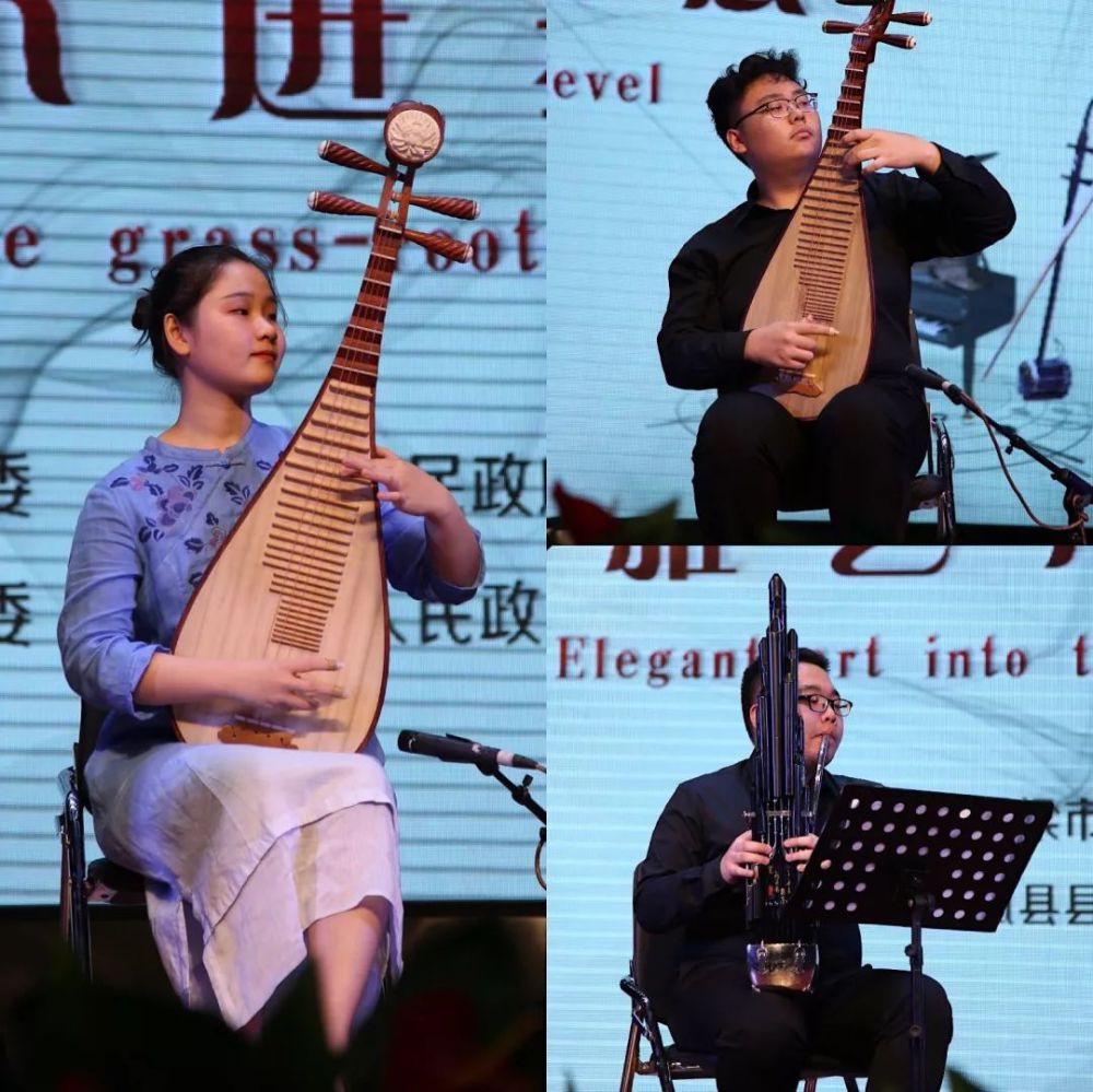 77779193永利集团学生表演了笙与琵琶重奏《我的祖国》和《送我一枝玫瑰花》、弦乐四重奏《梁祝》、笛子独奏《陕北四章·往事》、琵琶重奏《狼牙山五壮士》、男声独唱《驼铃》、笛子独奏《鹧鸪飞》、二胡独奏《兰花花叙事曲》、合唱《茉莉花》和《阿里山的姑娘》、器乐重奏《欢沁随想》(改编)、弦乐四重奏+合唱《我爱你中国》等曲目,民歌和戏曲改编的器乐曲引起了听众们的共鸣,加之同学们深情的演绎,十分令人动容。