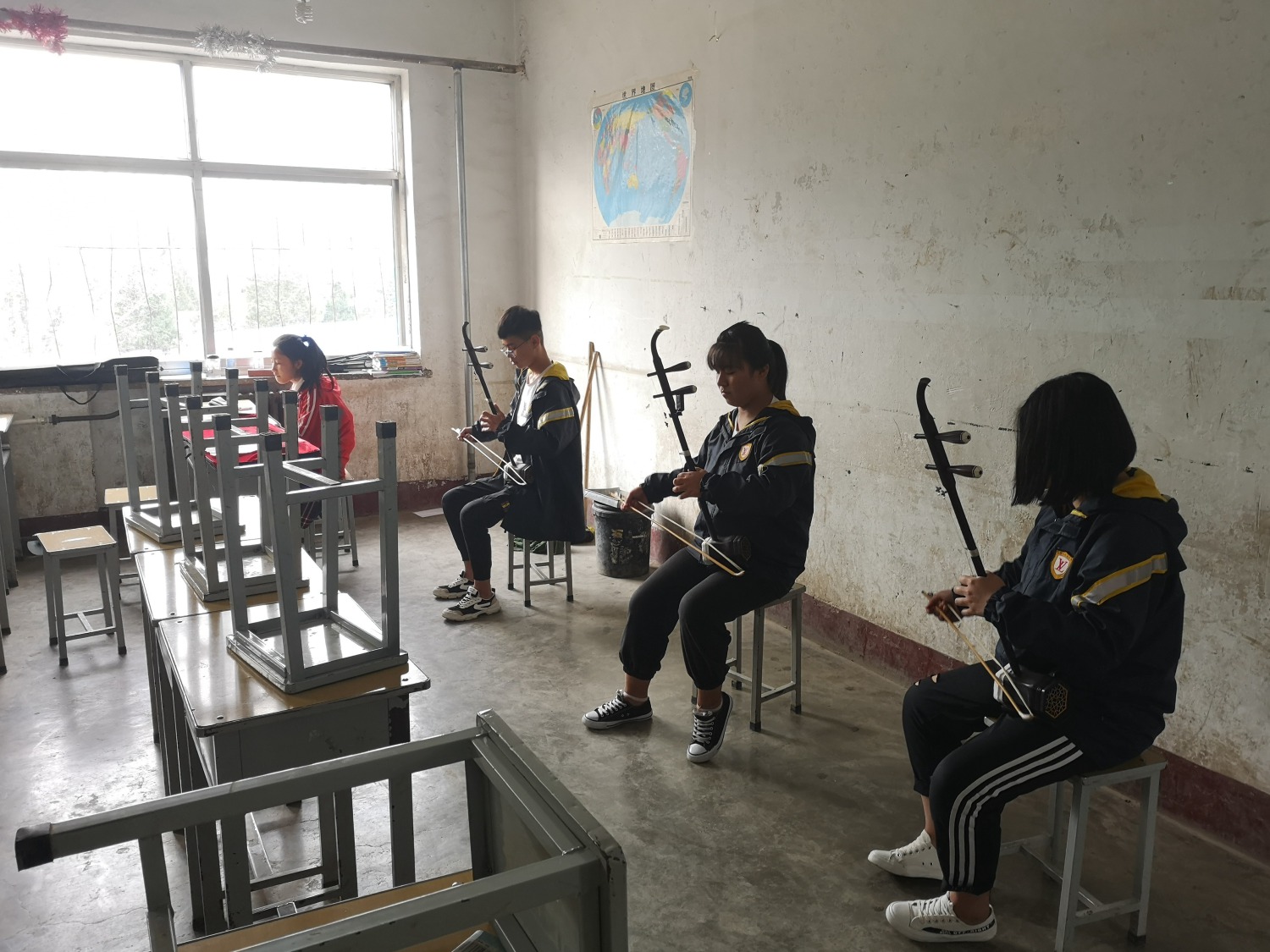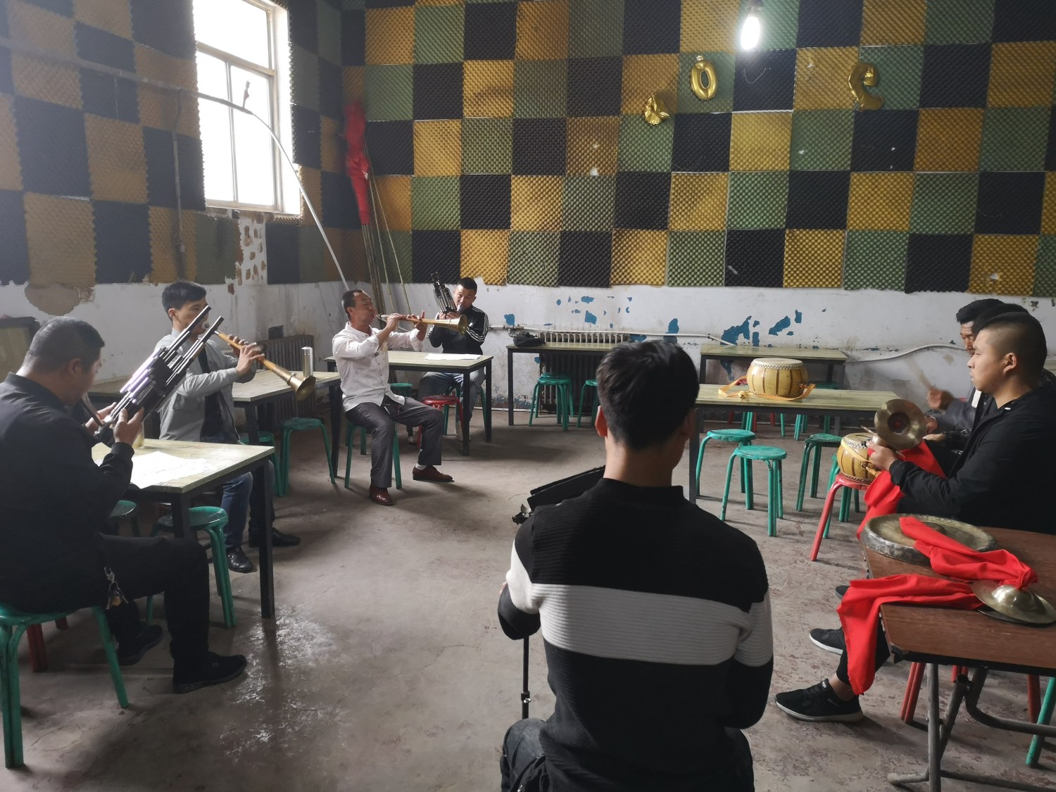 采风团还深入走访吕梁艺校、艺校分校,扎进一线深入了解老师、学生们的上课情况、生活环境。简陋的教室和宿舍丝毫没有影响学生坚定而渴望的学习热情,在没有大型排练教室的条件下,为了学好唢呐、舞蹈等专业,无论天气冷暖,吕梁艺校的学生们只能在室外简陋的操场上练习,尤其是唢呐专业,为了掌握好的吹奏姿势,老师学生们经常一站就是好几个小时,学生们的学习劲头与吃苦上进的精神面貌深深地震撼着采风团每一位老师。当晚,采风团观看了吕梁艺校学生的汇报演出,平均年龄在9至12岁的学生演员为在场观众上演了一场精彩而动人的演出,他们把晋剧、吹打乐等极富当地音乐特色的作品精彩淋漓地展现给观众,让我们感到很多民间宝贵艺术资源在他们的传帮带下,继续努力地保留与传承。