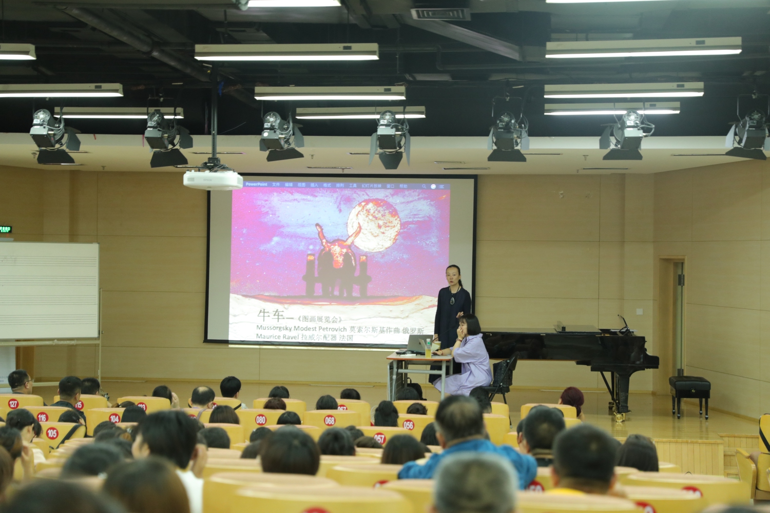 下午,永利作曲系视唱练耳教研室郝卓亚教授在同一地点开展了“用视唱来练耳”讲座。在讲座的前半部分,她结合丰富的音乐片段,为现场学员细致分析了音乐的五个基本要素,即速度、力度、音高、节奏、音色。在速度与力度方面,她强调乐谱上的每个速度与力度记号都是音乐中至关重要的部分,不同的记号有着细微但截然不同的意义,因此作为一名音乐工作者,应对乐谱上的标注有敏锐的感知;在音高与音色上,音调与音区的高低、音乐的上下行、音色的变化带来的都是不同的情感效果,她启发现场教师最大限度发挥想象力,并以此来引导学生来体验音乐;在节奏上,她展示了不同的记谱所展现出的完全不同的音乐风格,并细致分析了几种常见的节拍类型,让大家对节奏有了更深入的了解。在讲座的后半部分,她以法国作曲家圣-桑的《动物狂欢节》作为示例,带领学员上了一堂生动的视唱练耳课。在课上,她主要引导大家“做”出了音乐的五大要素,使得现场深刻感受到这些要素是如何有机而合理地组合在一起,并且营造出了何种美妙的效果。整场讲座,郝卓亚教授始终从“要听什么”、“怎么听”、“如何建议别人听”这几个角度来引导现场学员,并强调学员教师们以后授课时可以从多角度启发、提问学生。讲座圆满举行,令在座的200位教师受益匪浅。