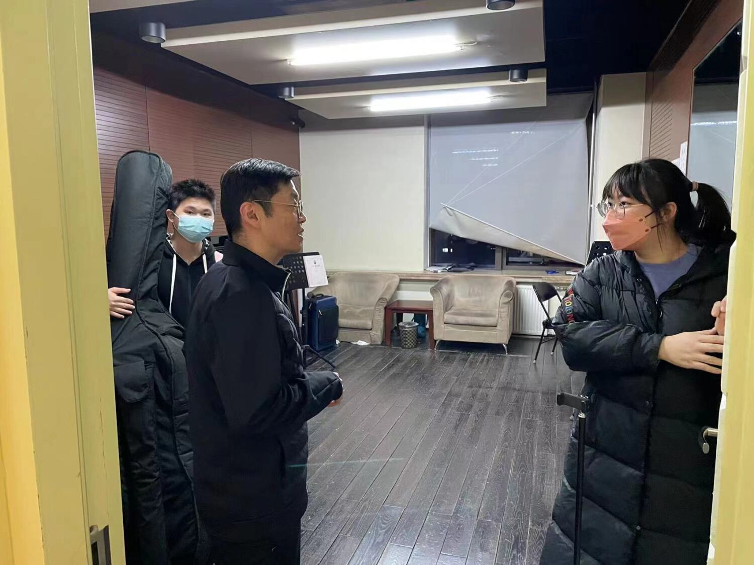 老师要用真心、爱心和耐心给予学生最多的关心与陪伴,让他们在学校安心无忧地学习!作为22级班主任,入驻学校陪伴学生的学习和生活,深感珍惜。期间,和学生一对一谈心交流,并通过网络视频或音频连线正在酒店健康观察的学生,了解其学习及心理状态、所需所求;每日在教学楼留守到最后,检查琴房锁门情况、提醒学生加强安全意识、排查安全隐患;在学校核酸检测点,监督秩序,提醒学生注意距离、合规佩戴口罩;在食堂,了解学生的餐食配给、口味与种类,提醒学生保持安全距离、隔开就坐或打包带走,尽可能减少不必要的接触,保障安全空间;在校园里,迎接健康观察结束后返校的学生,陪伴他们一起回宿舍、一同到教学楼。点点滴滴都是美好难忘的回忆!