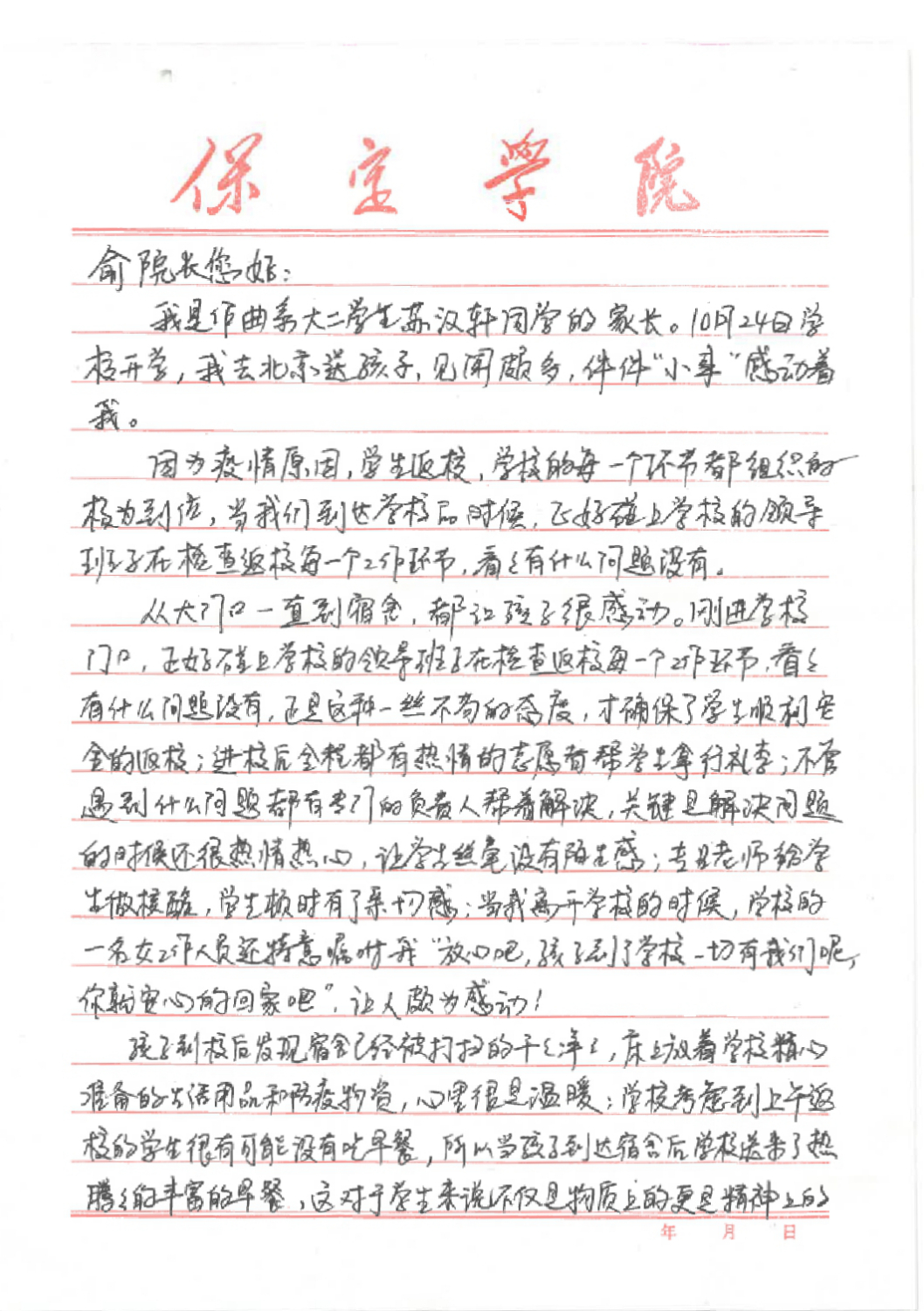 字里行间表达出对学校工作的