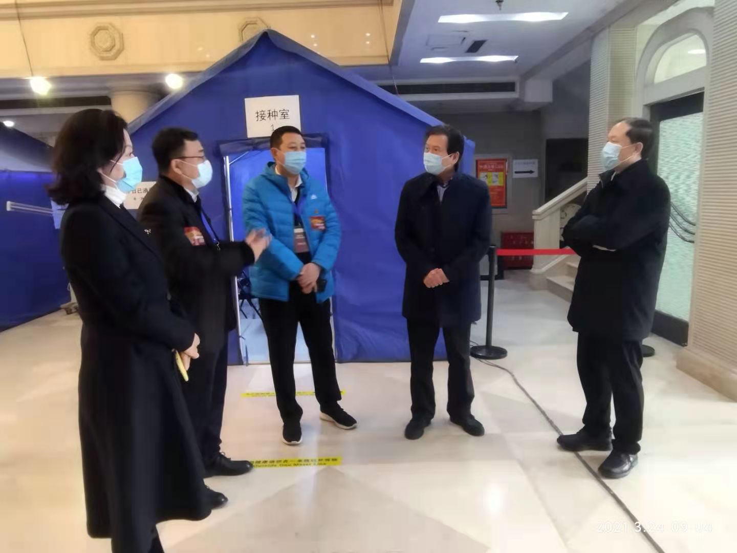 2021年3月24日上午,北京市教委一级巡视员黄侃同志在市教委职业教育与成人教育处陈敬文调研员的陪同下,来永利督查师生新冠疫苗接种工作开展情况,现场查看了学校琴房楼友谊厅疫苗接种现场,对咨询、登记、接种、留观、应急处置等整个工作流程进行了检查,并听取了学校党委书记赵旻同志对永利疫苗接种推进工作的介绍。