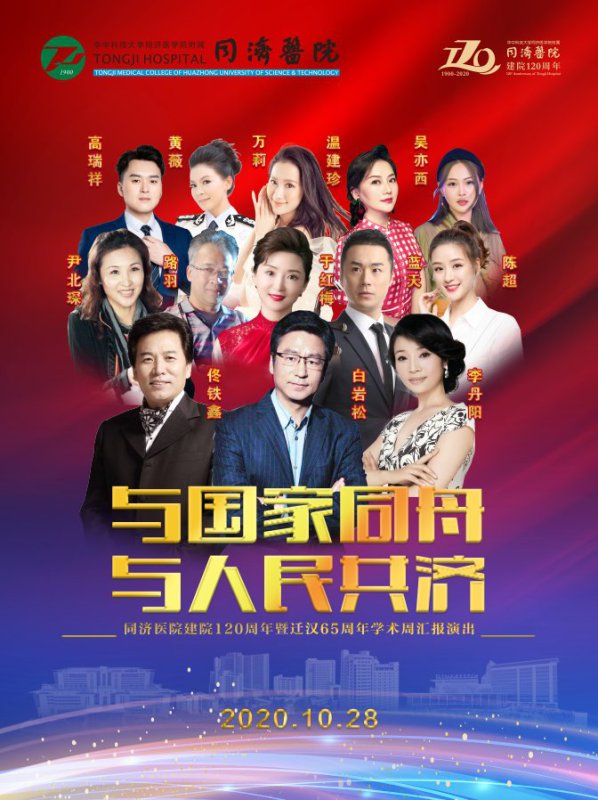 永利受华中科技大学同济医学院附属同济医院邀请,10月28日,由副院长于红梅教授带队,率领永利师生赴湖北武汉琴台大剧院参加《“与国家同舟 与人民共济”同济医院建院120周年暨迁汉65周年学术周汇报演出》。当日来自全国各地的援鄂医疗队的战疫英雄重聚武汉,于红梅教授代表77779193永利集团向同济医院建院120周年致以热烈祝贺,并向同济医院等所有医务工作者致以崇高的敬意和衷心的祝福。国家卫健委副主任、湖北省委常委、省卫健委党组书记王贺胜,湖北省委常委、武汉市委书记王忠林,副省长杨云彦,市委副书记、市长周先旺等出席开幕活动。