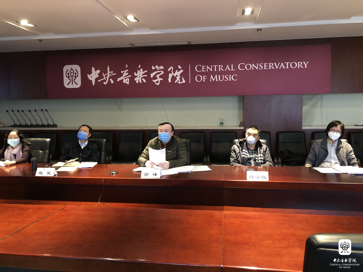 1月22日下午,俞峰校长主持召开第一次“新型冠状病毒感染的肺炎疫情防控工作部署会”,明确部门工作分工,启动情况报告,做好赴湖北地区人员情况统计和留校学生工作,制定艺术类招生考试等大型活动疫情防控预案,对校门实行严格管理,减少校外人员进入校区。23日下午,书记与校长商量决定:一是成立“新型冠状病毒感染的肺炎疫情防控工作领导小组”;二是腾出筒一楼建立健康观察点;三是向教育部和北京市报告学校特殊类型招生考试和报名人员分布情况;四是加强物资储备;五是寒假期间不举办任何大型或集体活动;六是按照上级要求做好师生流动数据统计;七是做好在校学生和留学生工作;八是及时主动与地方政府、市卫生防疫部门做好联系和沟通。