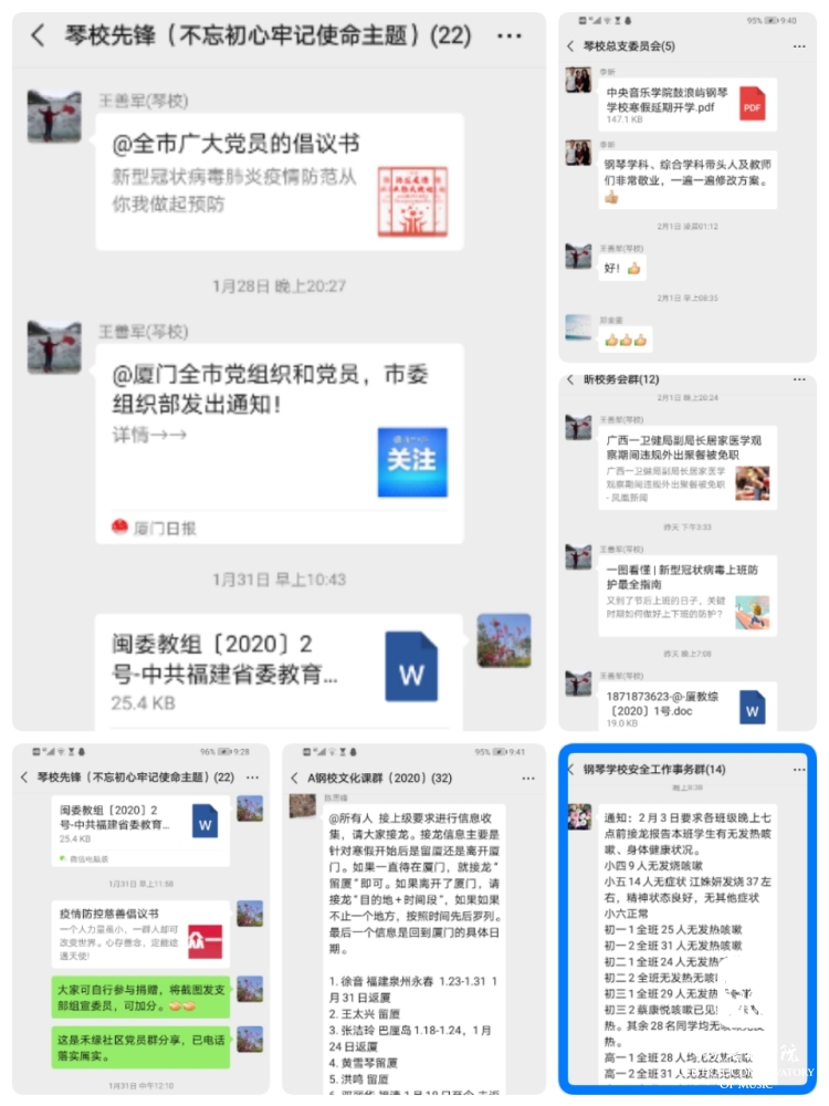 特殊时期防控就是党员的责任。钢琴学校广大党员干部积极响应党总支号召,立足本职岗位,进入“战时”状态。