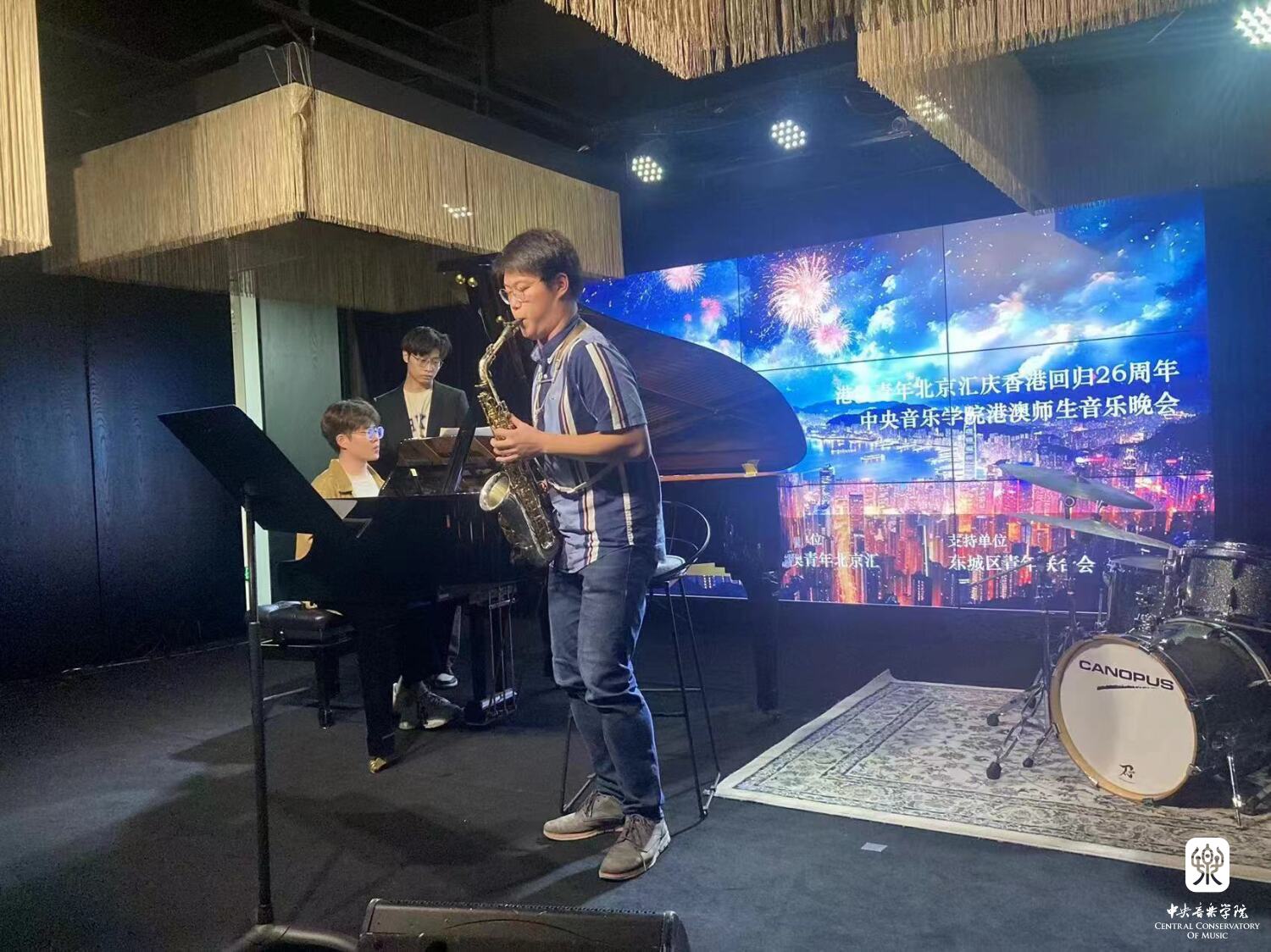 7月1日是香港回归26周年纪念日。7月2日,永利师生一行8人在东城区东环会堂举行了一场别开生面的音乐晚会,以悠扬的乐声庆祝香港回归祖国。永利来自香港的周全教授率领5位来自香港和澳门的本科同学以及两位研究生,为现场一百多名观众献上了十几首世界名曲。