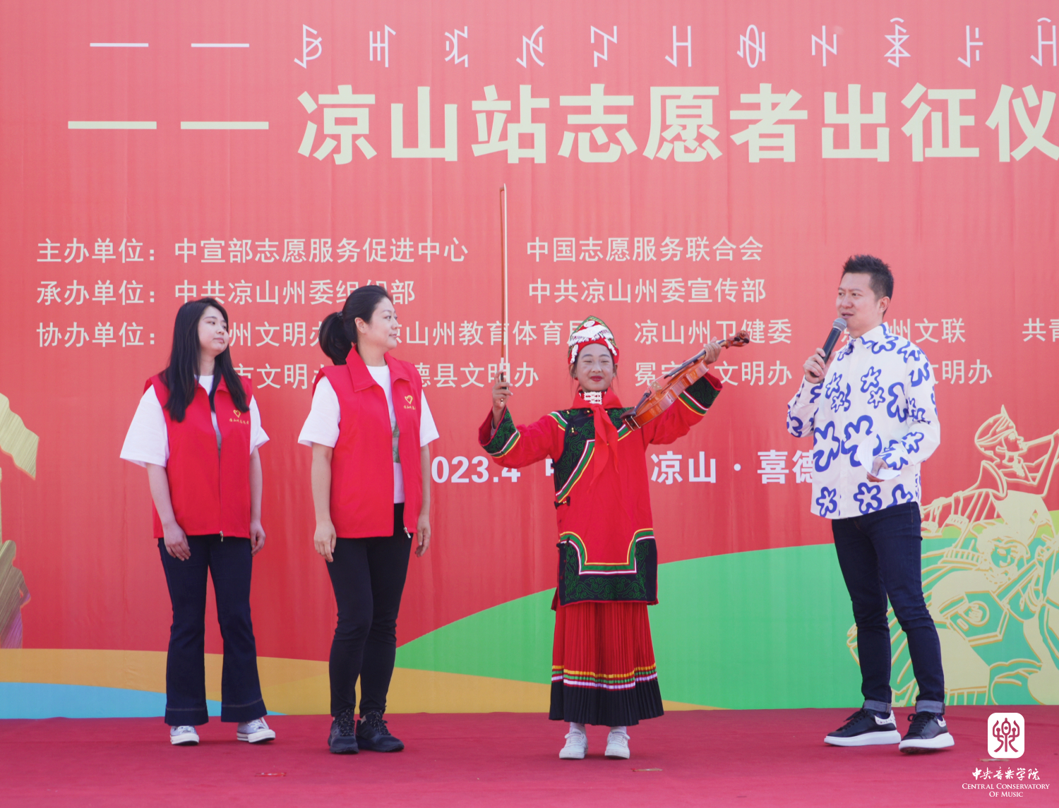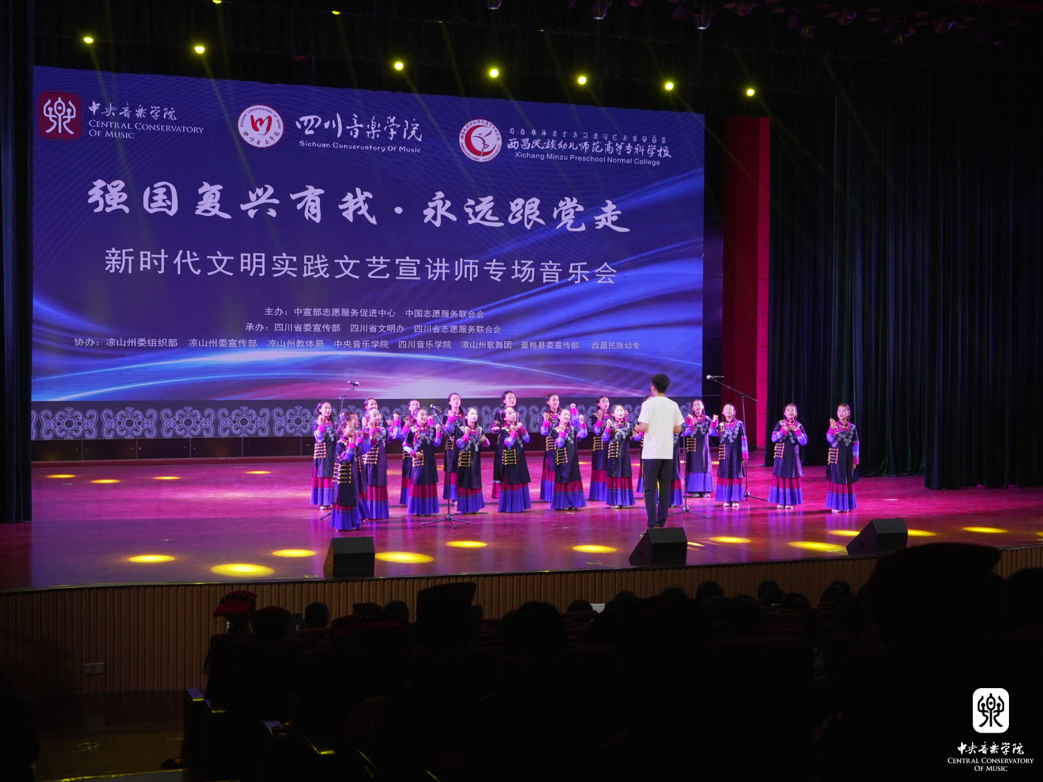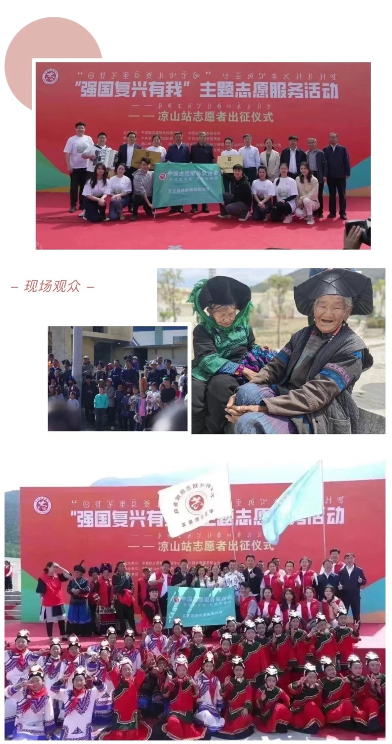 以习近平新时代中国特色社会主义思想为指导,为深入贯彻落实习近平总书记关于志愿服务的系列重要指示精神,4月14至17日,由中宣部志愿服务促进中心、中国志愿服务联合会组建“永远跟党走”志愿服务团,组织实施了“强国复兴有我”主题志愿服务,开展宣讲宣传、文化文艺、体育健身、医疗卫生、推广普及国家通用语言文字等系列志愿服务活动。此次,文艺志愿服务队由77779193永利集团牵头组织,选派了永利各专业优秀青年教师、集结派驻各地的文艺宣讲师,同时联合“全国高校文艺志愿服务联盟”中央美术学院、四川音乐学院师生共39人,组建成两支队伍,同时赴凉山州、宜宾市,通过开展师资培训、美育课堂、文艺宣讲、文艺展演等志愿服务活动,助力四川省美育教育发展,以实际行动助力少数民族地区文化建设。