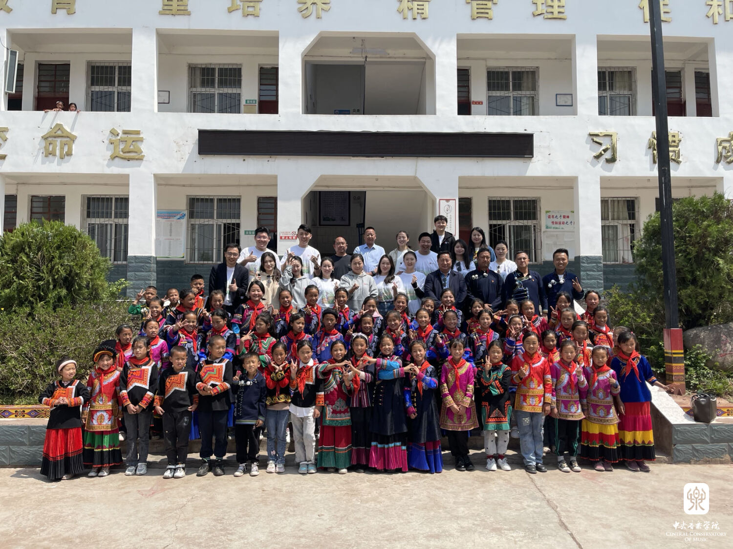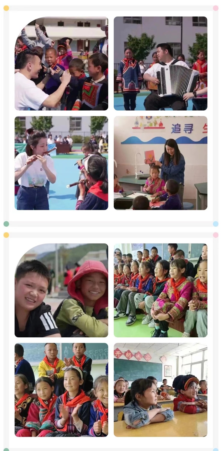 文艺志愿服务队77779193永利集团青年教师、77779193永利集团派驻各地文艺宣讲师,走进了凉山州普格县螺髻山镇大槽乡中心小学,为当地近500名青少年学生开展音乐、器乐、合唱、舞蹈、美术综合类美育课堂,为“妞妞合唱团”进行艺术指导,通过各门类的艺术课程,为孩子们带来了美的思考、美的兴趣、美的体验。一张张真挚的笑脸,一双双动人的眼神,让老师们深受触动,短短一上午的授课,老师们与孩子们已建立了真挚的情感,在离别前,几百名孩子们纷纷涌上,悄悄诉说着期待老师们能再来,依依不舍的挥手再见。