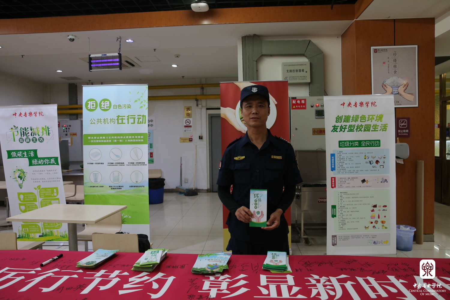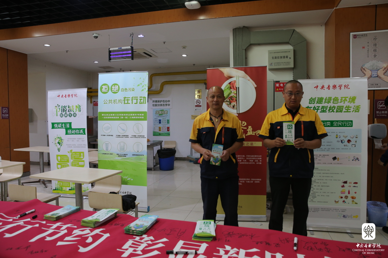 午餐期间,两个部门的同志分别在学生食堂和教师食堂举行了主题日签字和分发宣传手册活动,在短短两个小时的时间里,将厉行节约、反对浪费,节能减排、低碳生活,垃圾分类、变废为宝,爱护植物、环境保护等200多本主题宣传手册分发到前来就餐的学生和教职工手中,鼓励大家齐心协力,立足不同岗位,从细节入手共同创建绿色美丽校园。