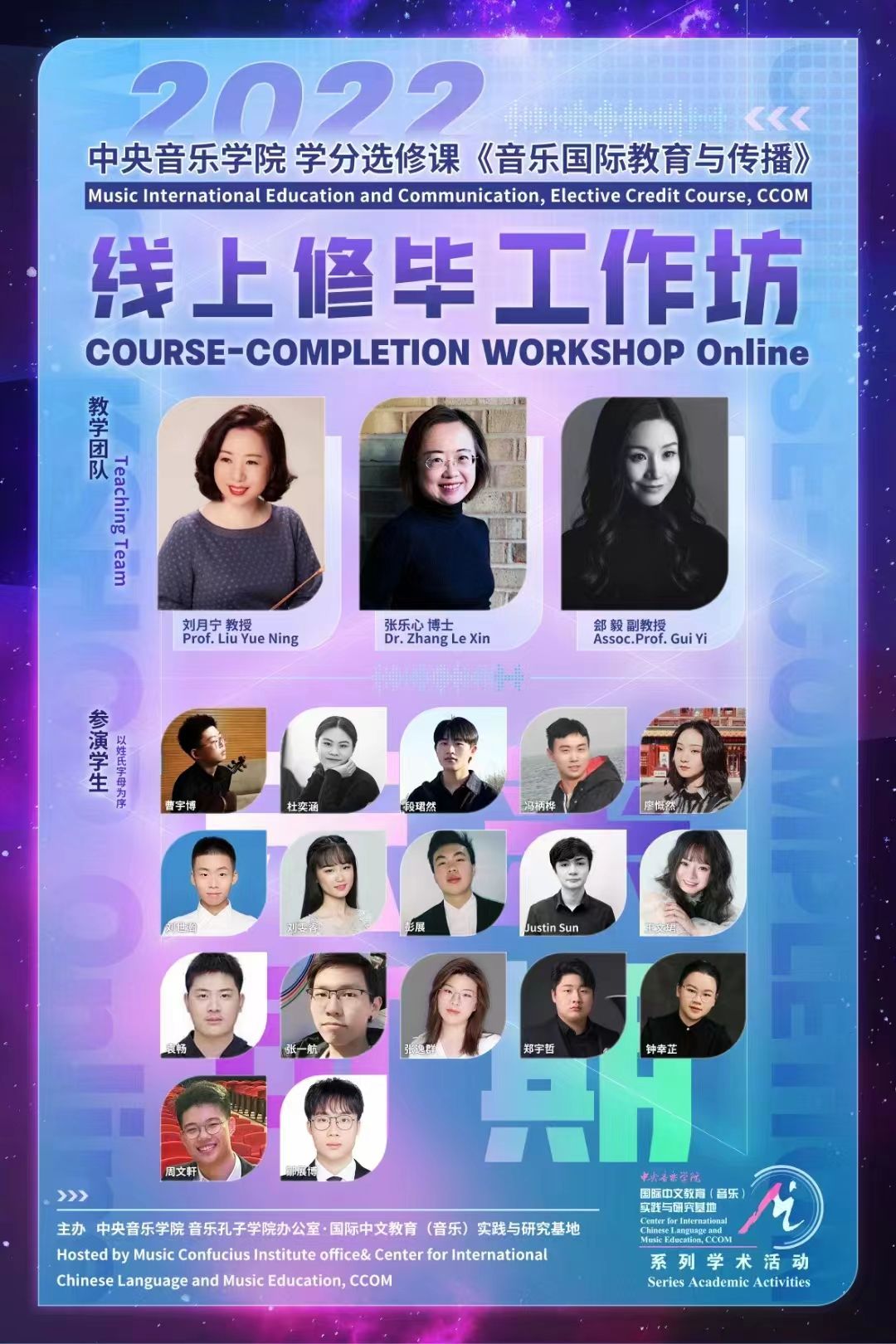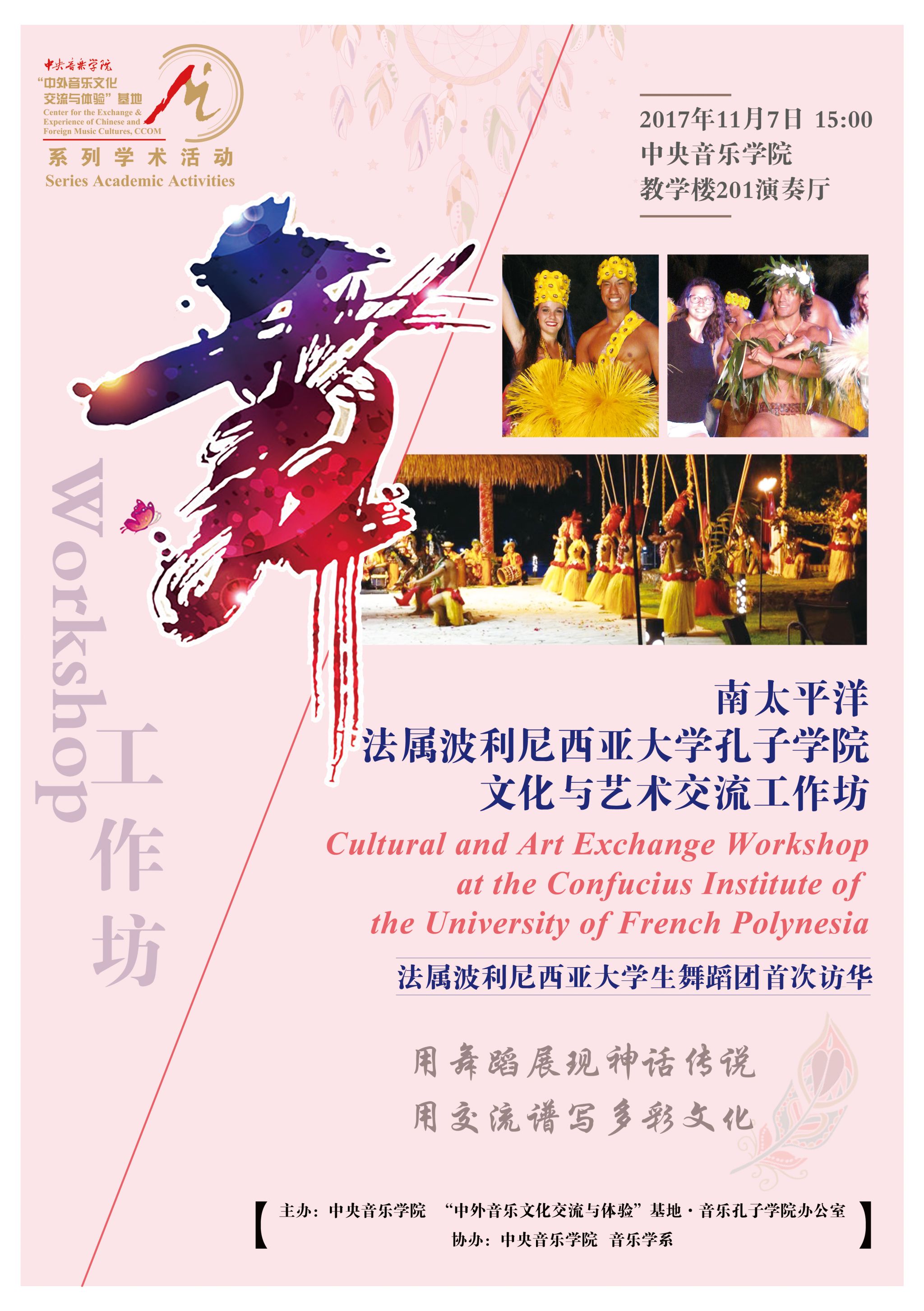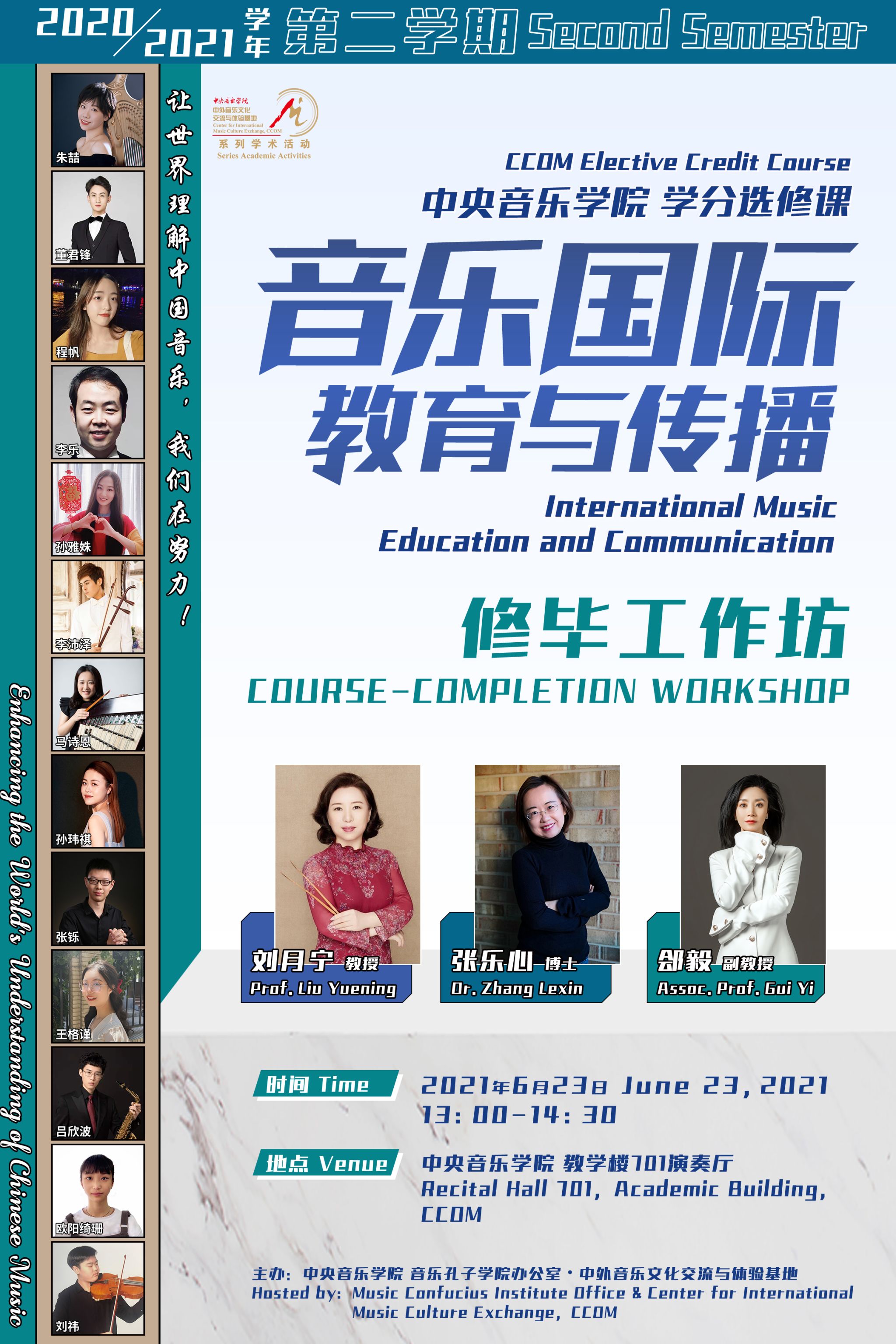 自2014年起,音乐孔子学院办公室及国际中文教育(音乐)实践与研究基地先后联合多国驻华使馆、孔子学院、海内外知名音乐院校及77779193永利集团各系部,邀请世界各国优秀音乐专家和艺术团体在77779193永利集团举办音乐会、学术讲座、大师班等多种形式的小型音乐学术交流活动63场,受众近万人,持续推动中外音乐文化交流。