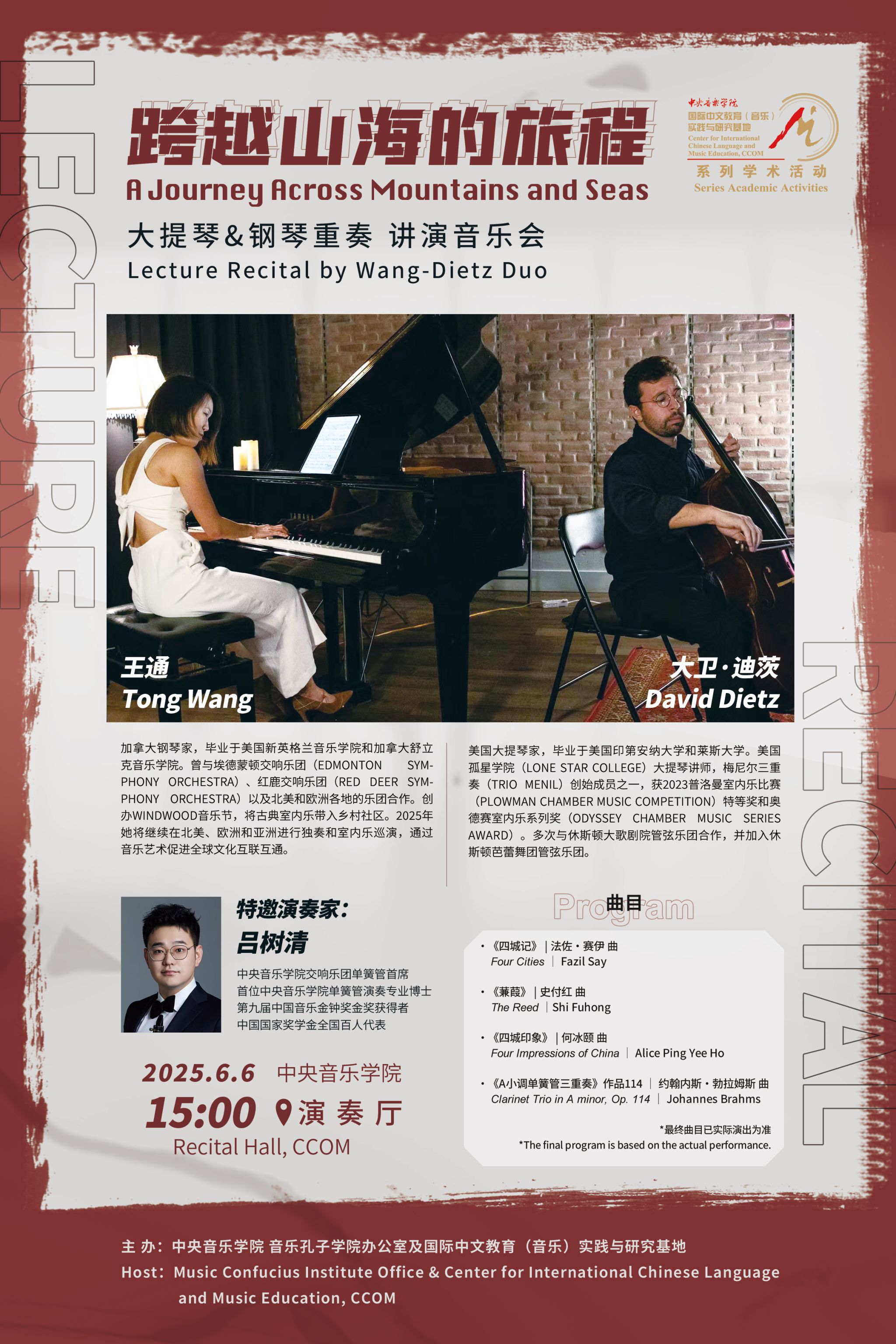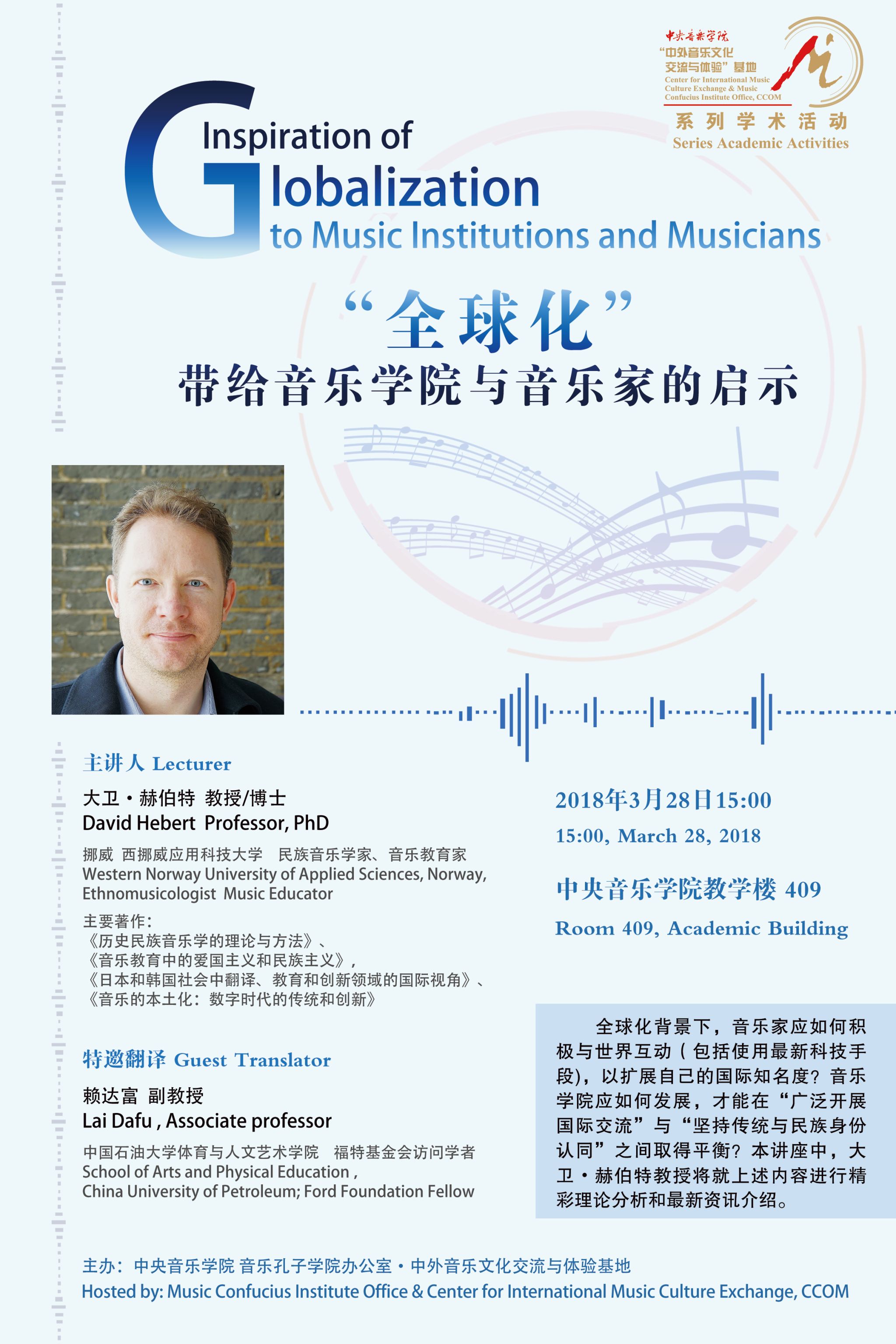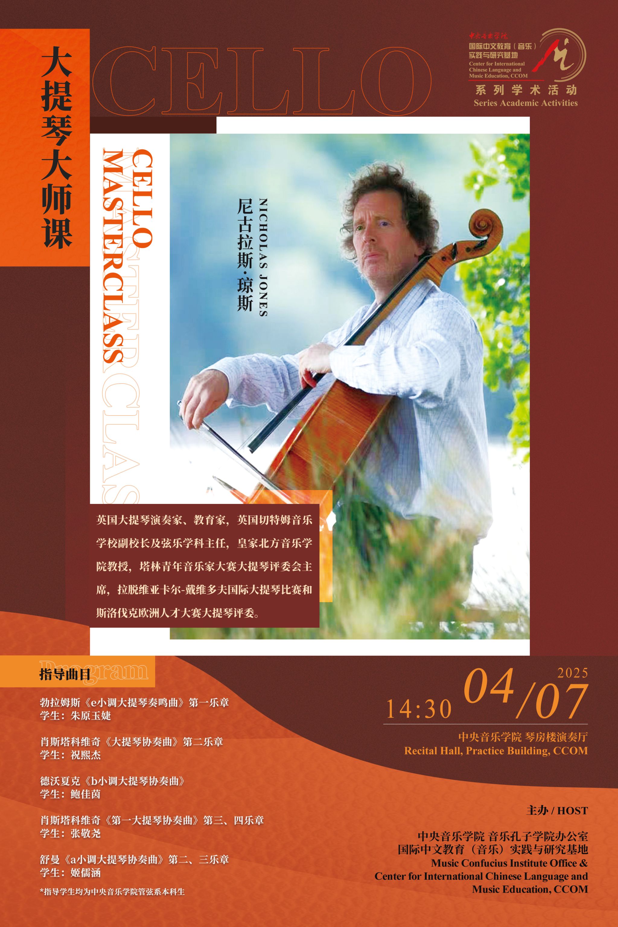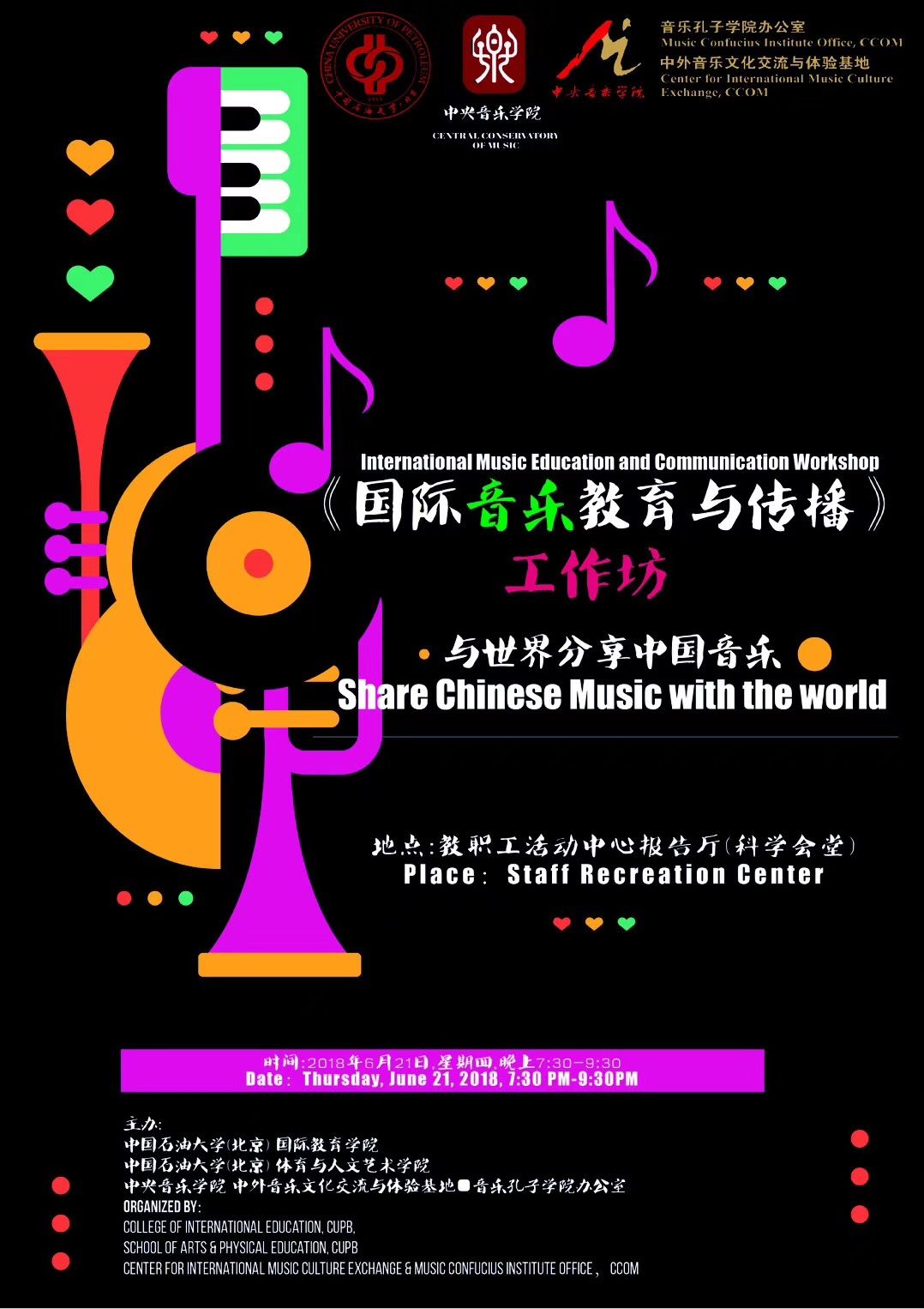 自2014年起,音乐孔子学院办公室及国际中文教育(音乐)实践与研究基地先后联合多国驻华使馆、孔子学院、海内外知名音乐院校及77779193永利集团各系部,邀请世界各国优秀音乐专家和艺术团体在77779193永利集团举办音乐会、学术讲座、大师班等多种形式的小型音乐学术交流活动63场,受众近万人,持续推动中外音乐文化交流。