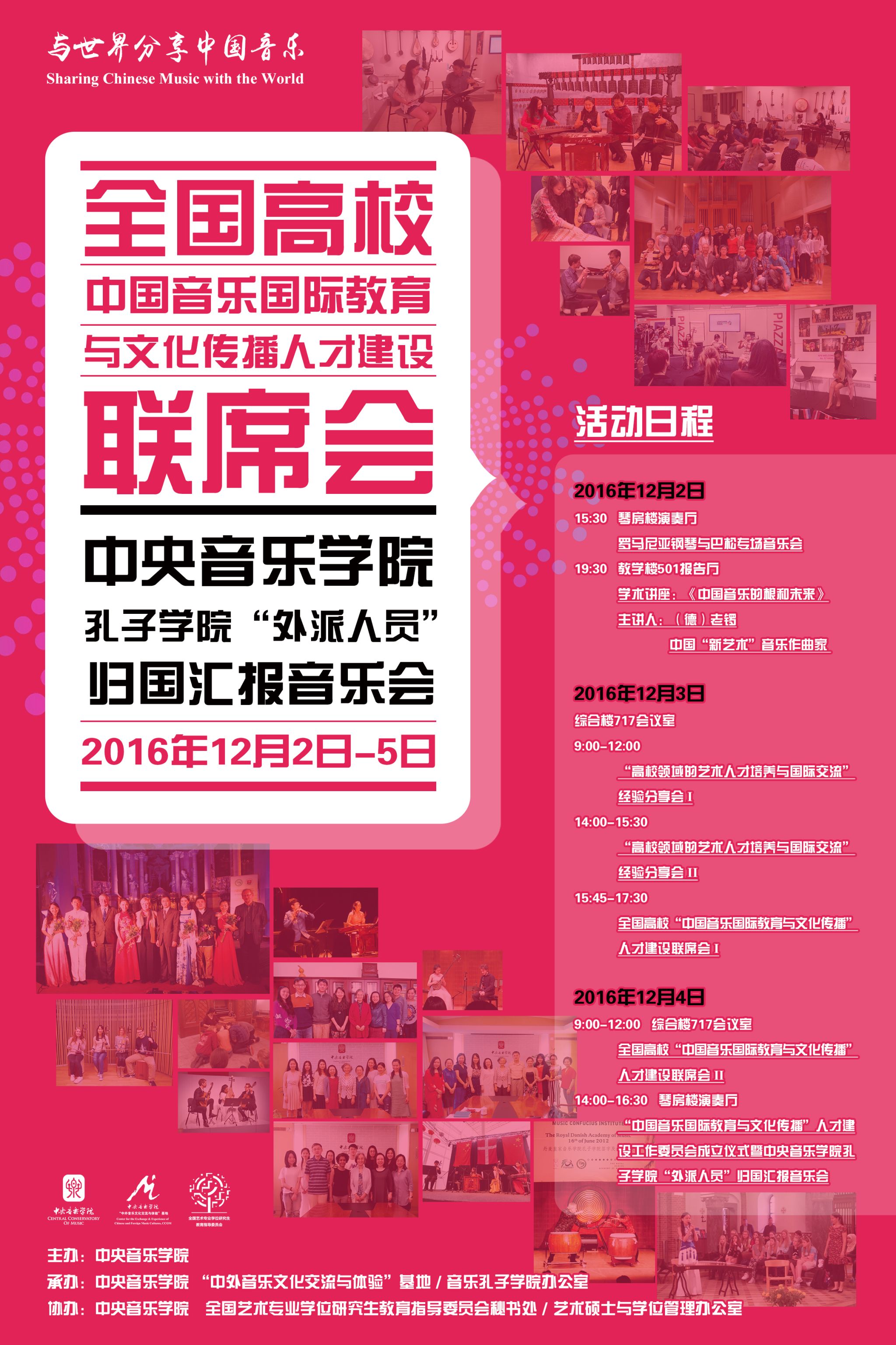 “与世界分享中国音乐”国际论坛是音乐孔子学院办公室及国际中文教育(音乐)实践与研究基地于2013年创立的研讨交流品牌项目,邀请不同领域的专家学者围绕“中国音乐文化国际教育与传播”的主题展开集中探讨,旨在通过理论研讨与音乐演奏及教学相结合的独特形式,追求理论与演奏、创作、管理、人才培养等不同层面的协同共进、深度结合。